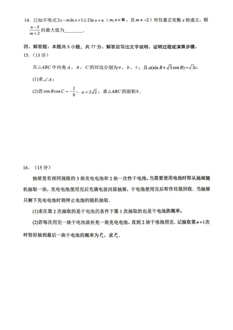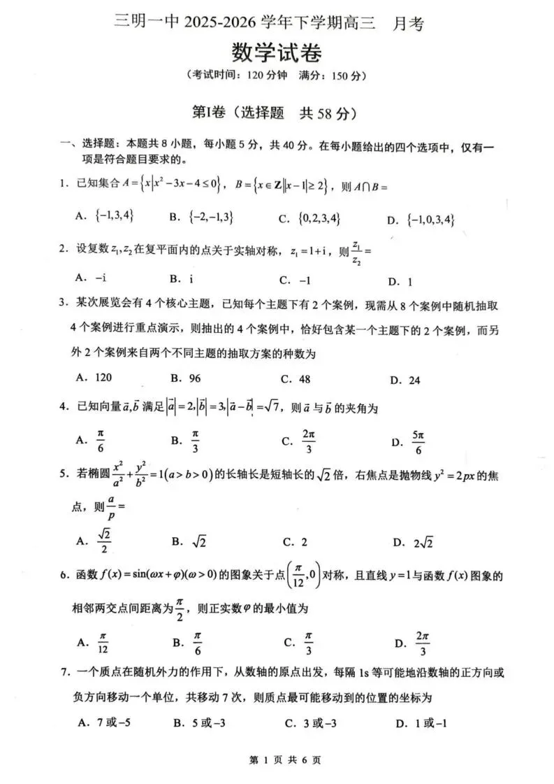 >【高一、高二、高三最新月考试卷】福建三明一中2026届高三下学期3月月考数学+答案
