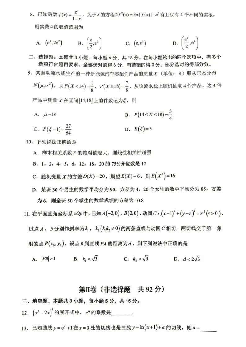 呼和浩特市2026年高三一模试卷(附2道选择题视频解析)