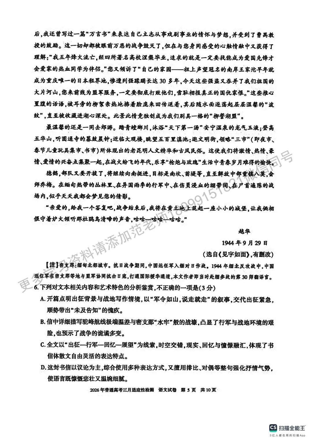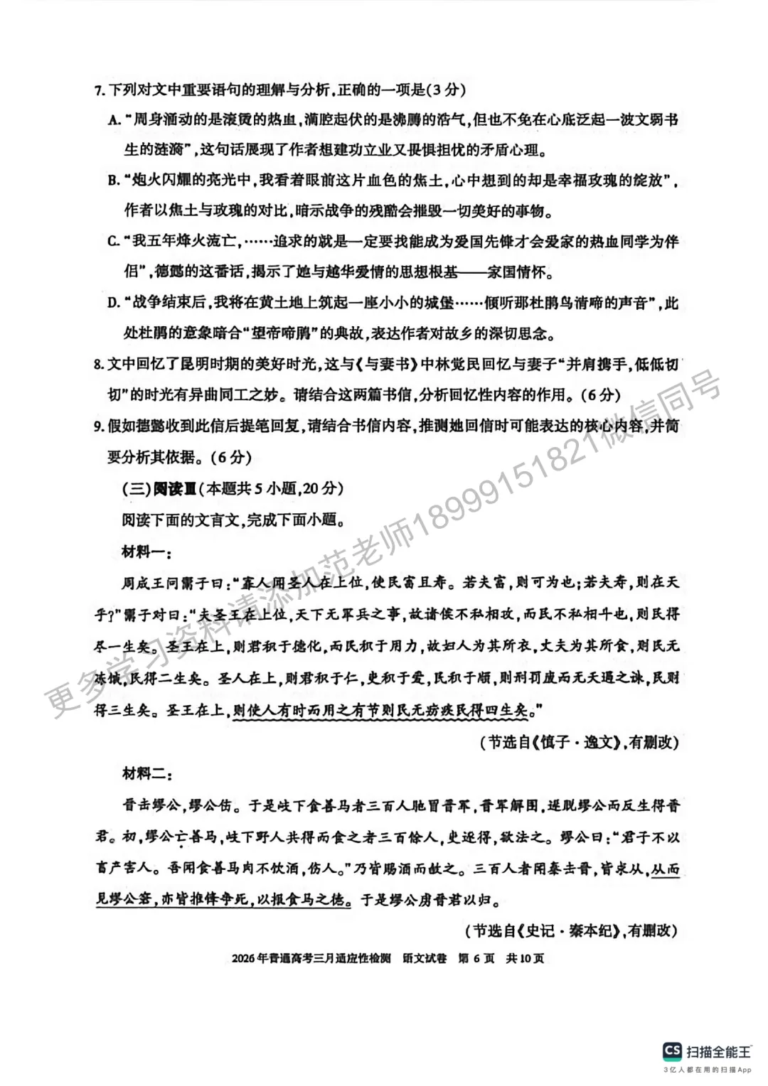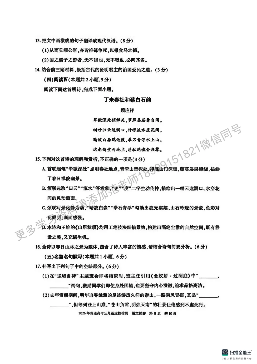 【9年级武汉外校语文3月月考试卷】2025-2026下学期