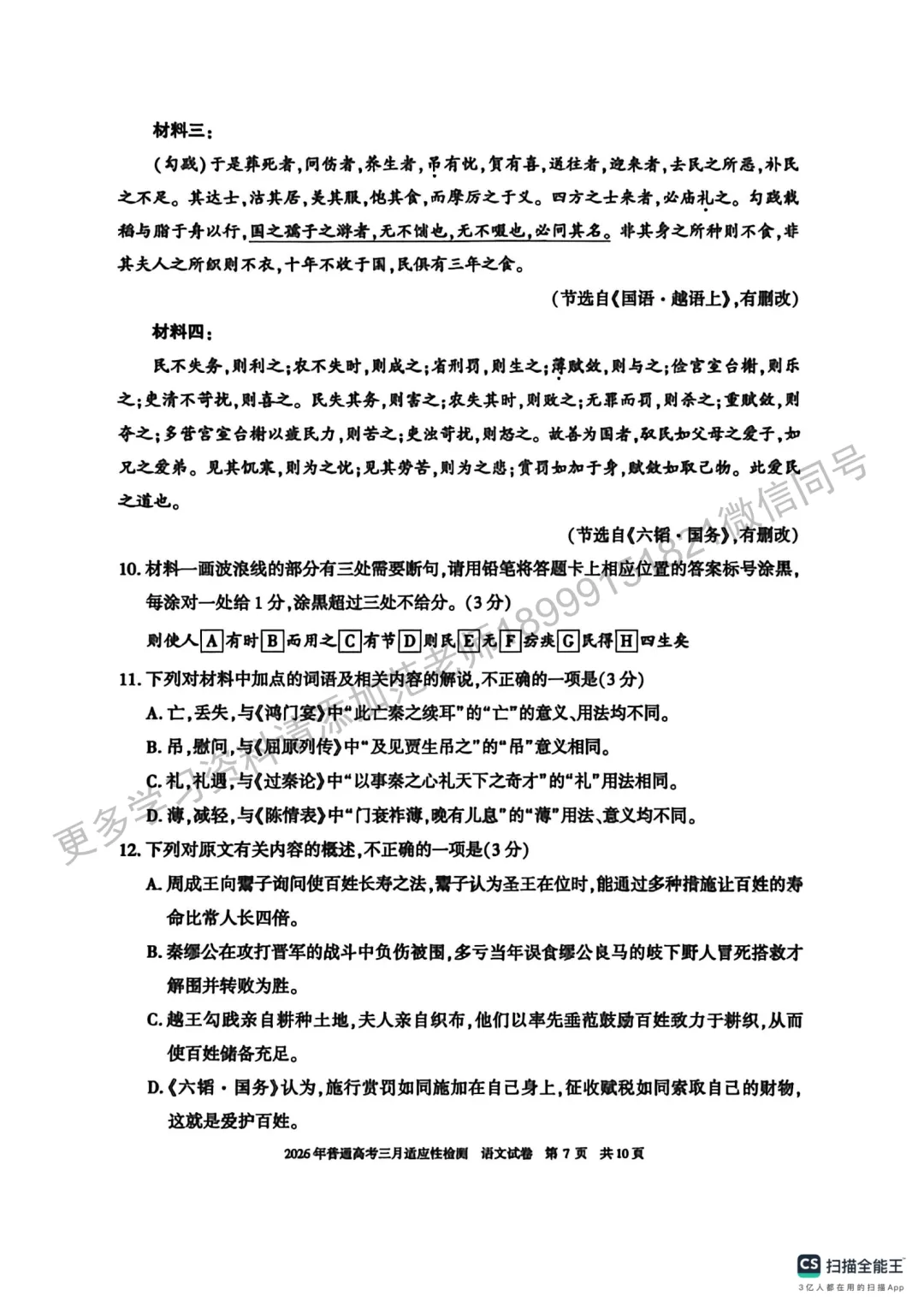 呼和浩特市2026年高三一模试卷(附2道选择题视频解析)