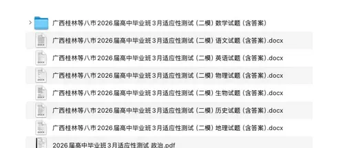 广西 2026 届高三八市联考 / 广西高三二模跨市适应性测试,是广西 2026 届高三二轮复习阶段的核心省级跨市统考,参与地市包含梧州、玉林、贵港、钦州、百色,同步覆盖北海、来宾、贺州等多地市,考试于 2026 年 3 月下旬举行,命题完全对标新高考全国卷规范,全科覆盖高考统考科目,是高考前重要的学情诊断与适应性模拟考试。数学科目