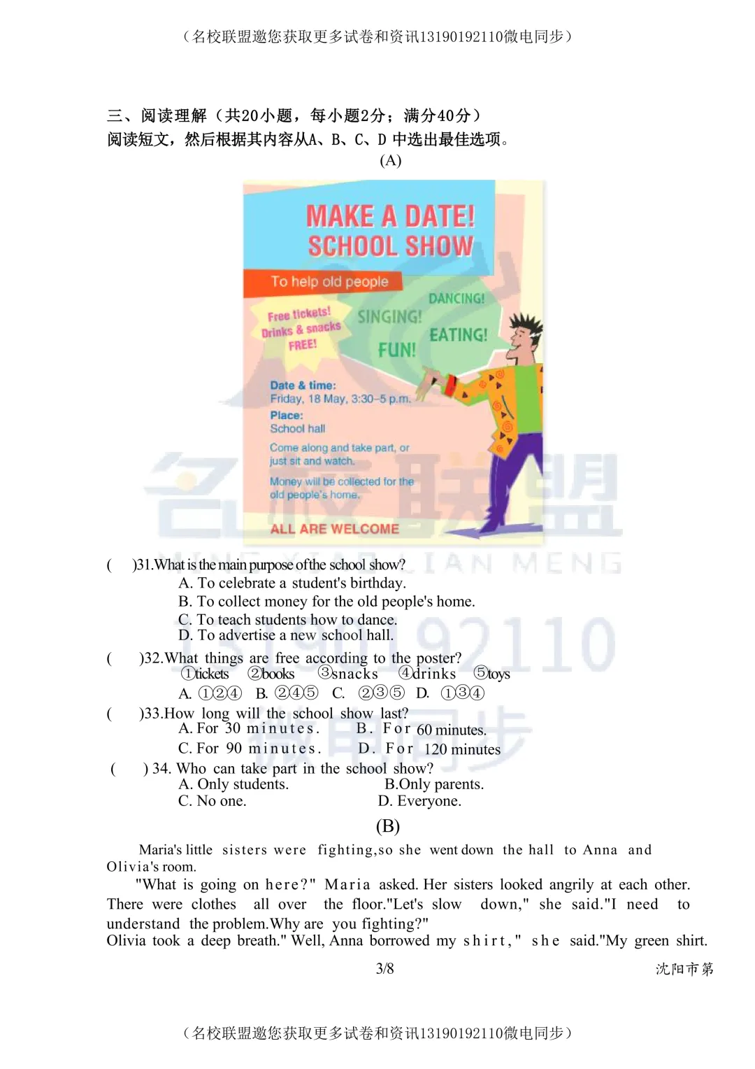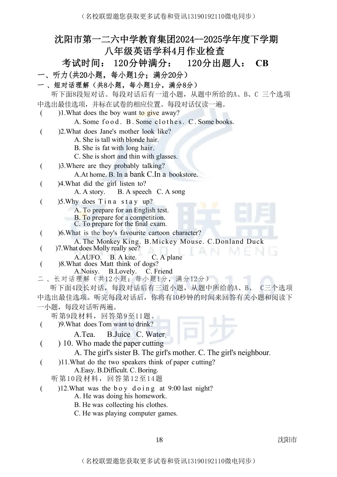 >【初二试卷】名榜教育&辽宁名校联盟 初中全科试卷分享