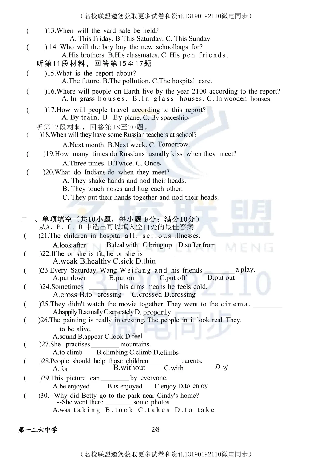 这试卷质量太高 #听力理解练习 #英语试卷解
