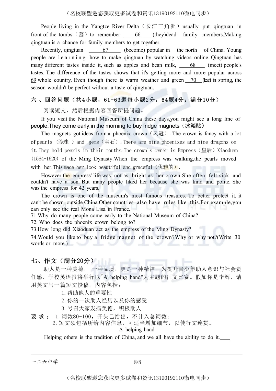 【初二试卷】名榜教育&辽宁名校联盟 初中全科试卷分享