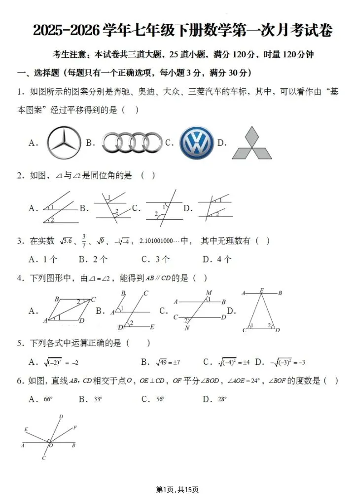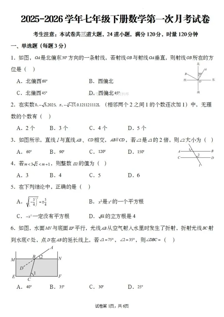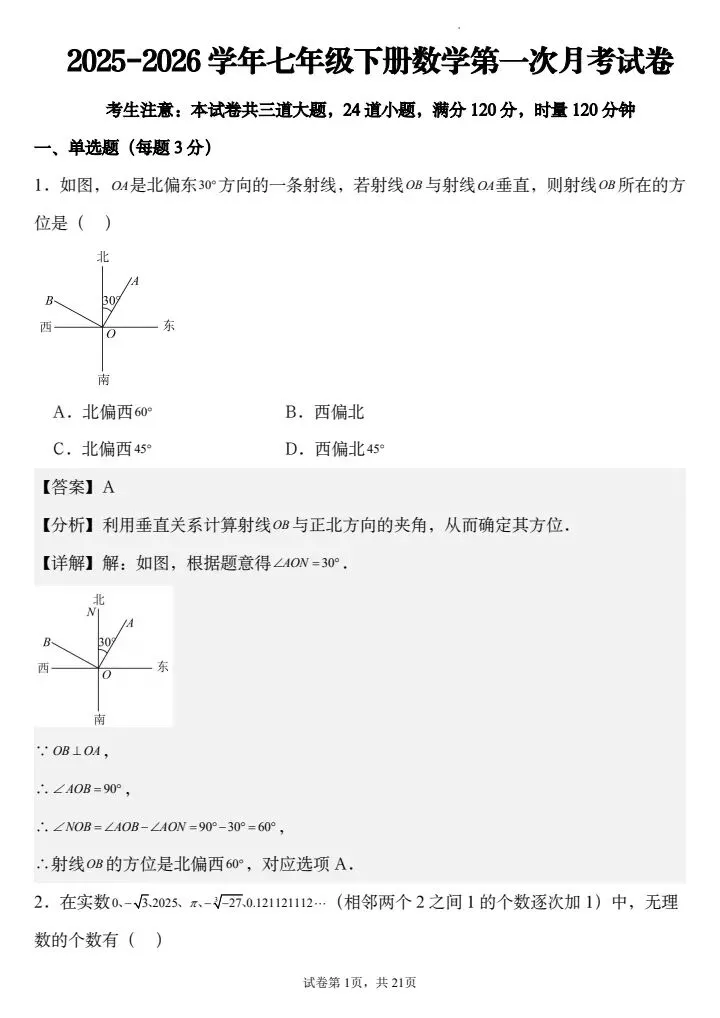 寒假蓄力,进阶不停歇。今日分享26春七年级下册数学第一次月考试卷3套(含答案)完整电子版可打印!高清可打印,每日轻量练习,拒绝无效刷题,用系统化资料筑牢学科基础,让假期成为提升的黄金期,开学轻松领跑。