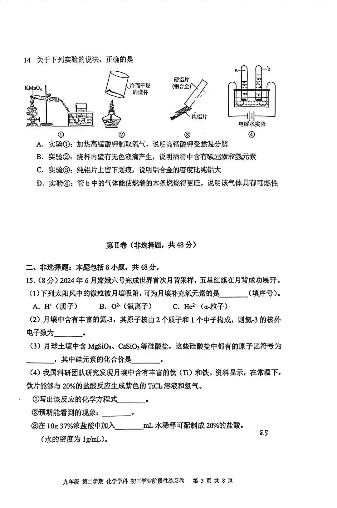 260503121育实九下三月化学月考试卷