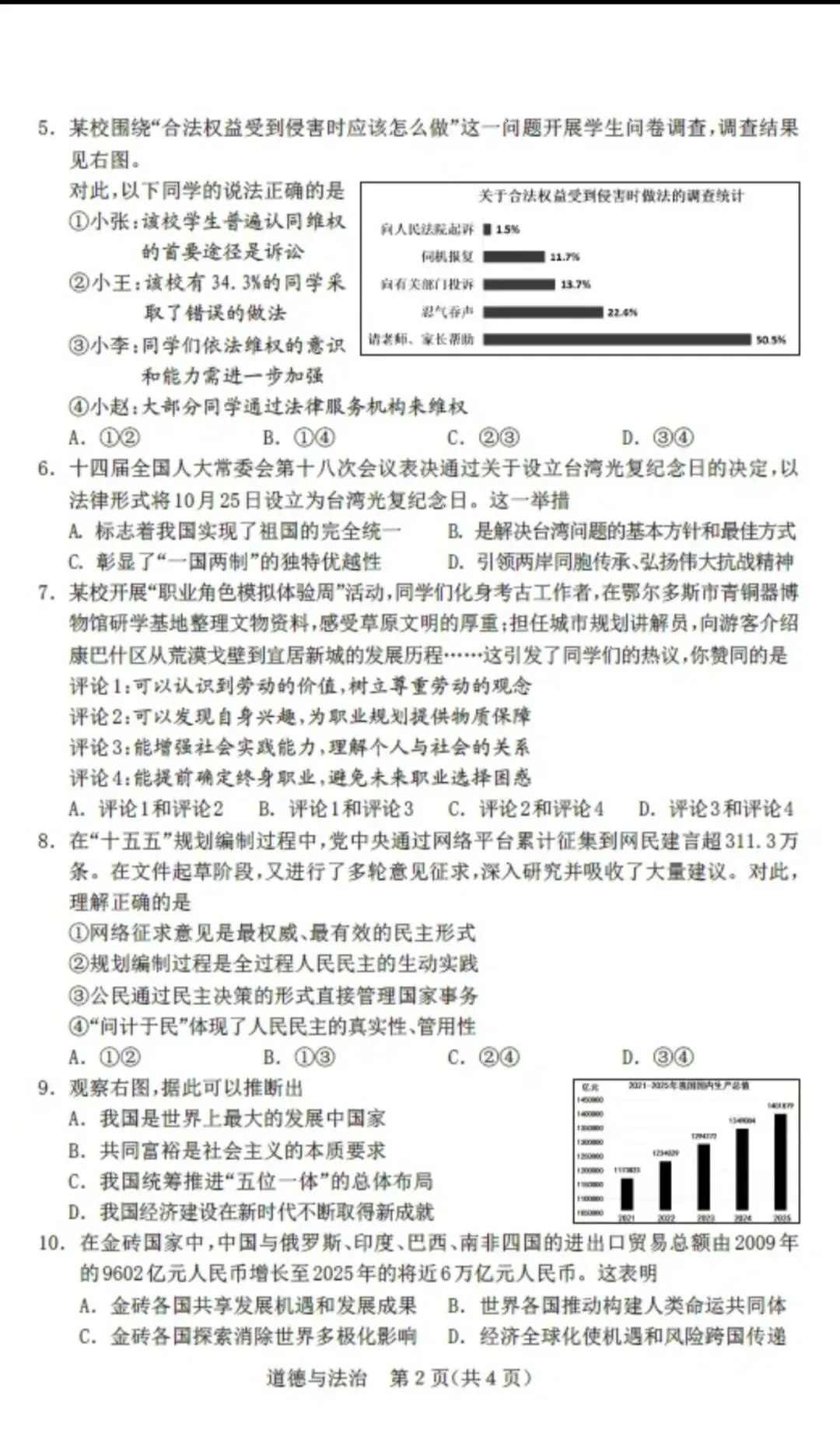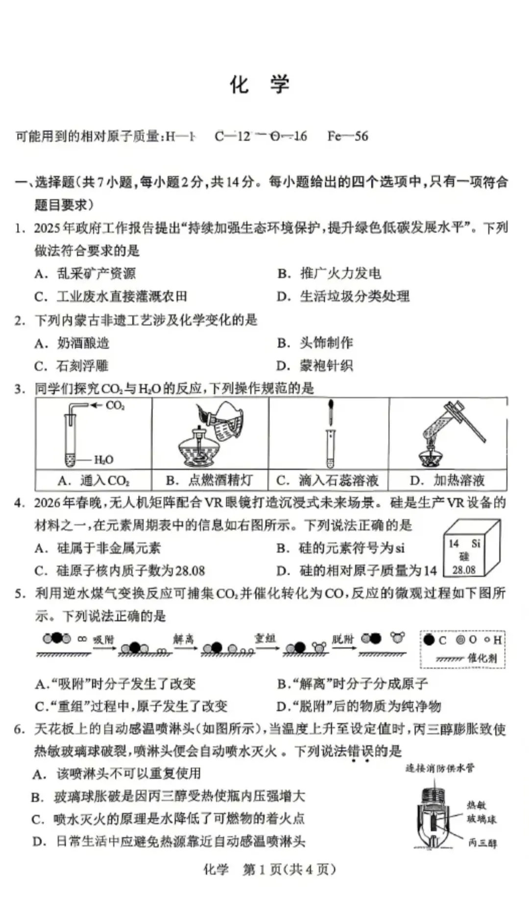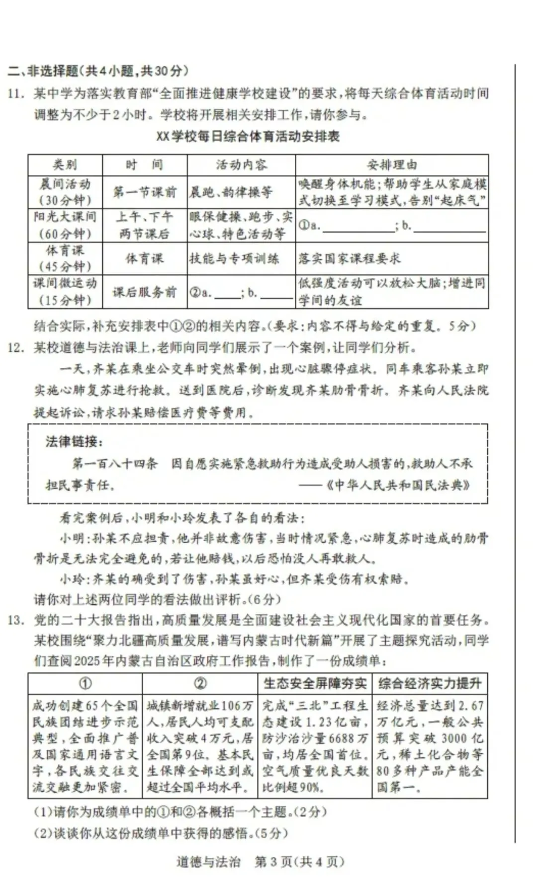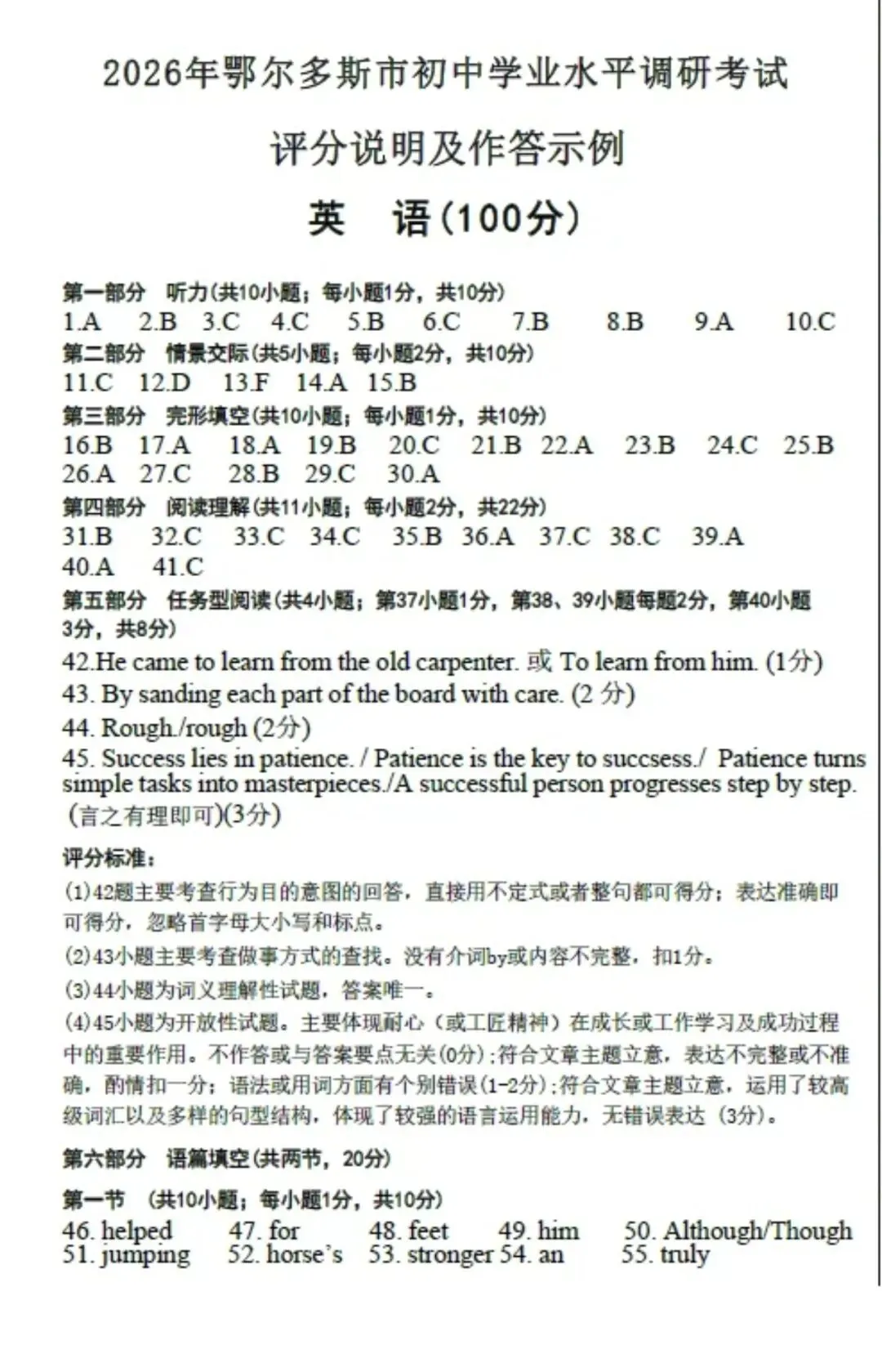>2026年中考鄂尔多斯市一模全科试卷