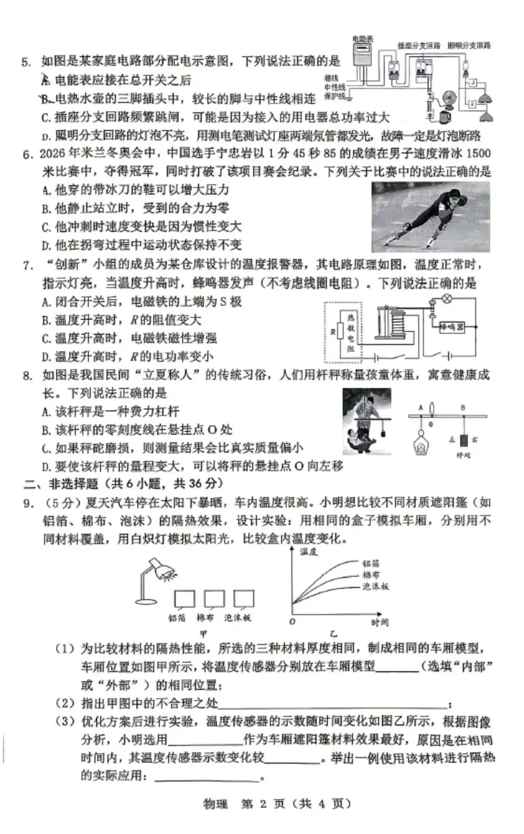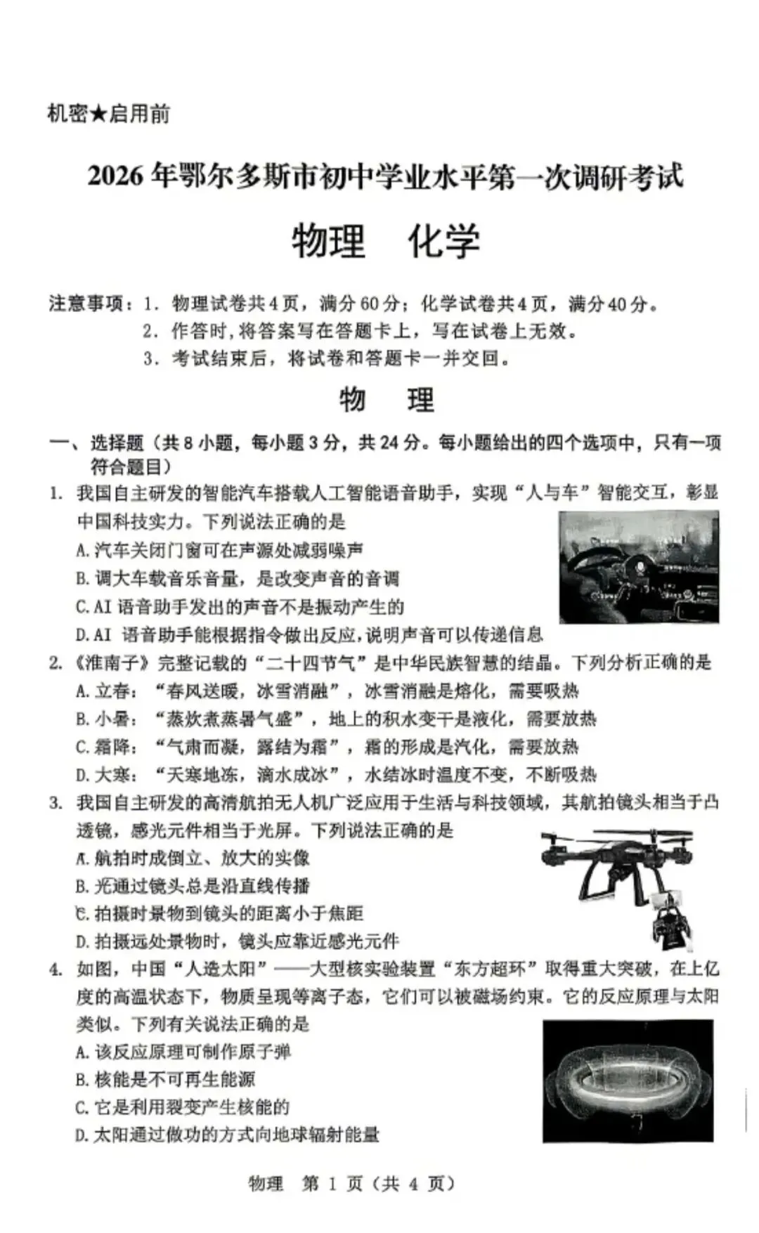 2026年3月鄂尔多斯中考一模试卷和答案:物理
