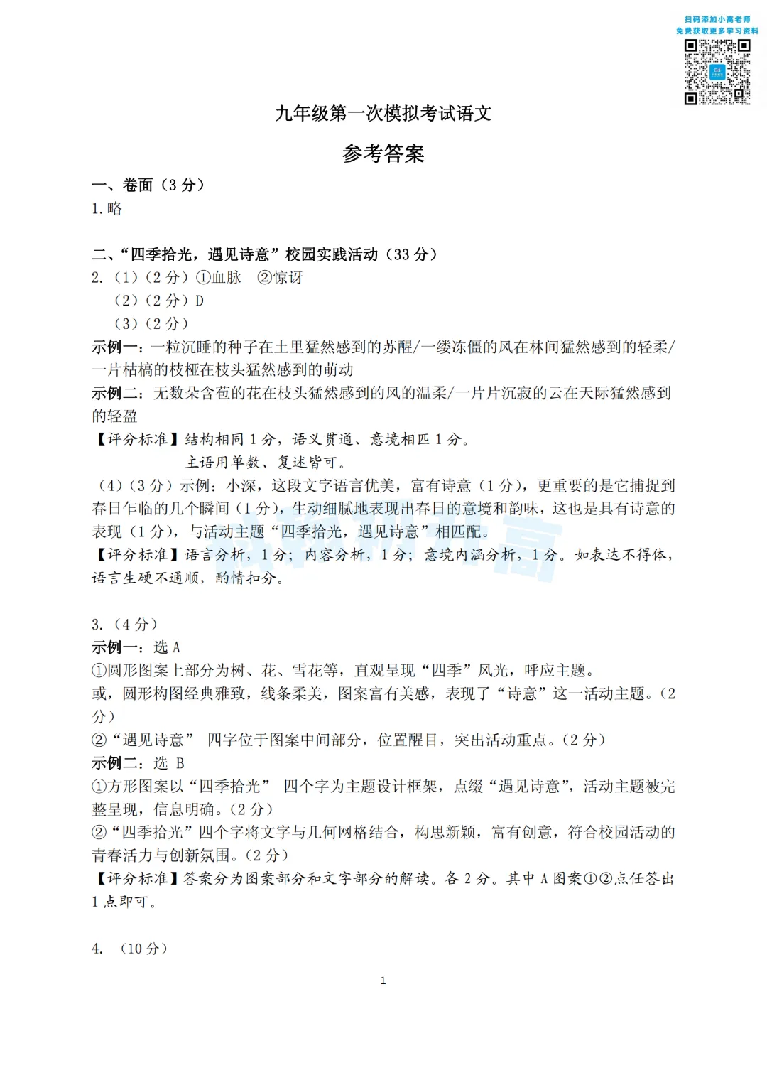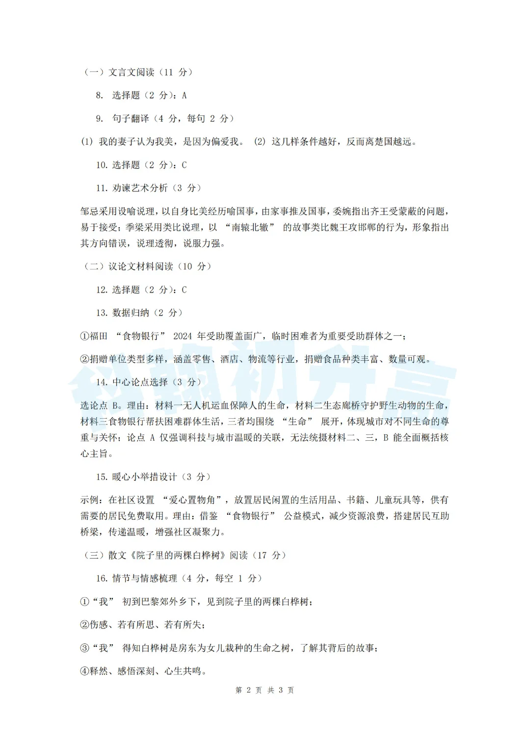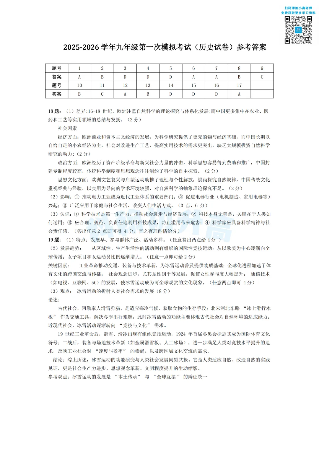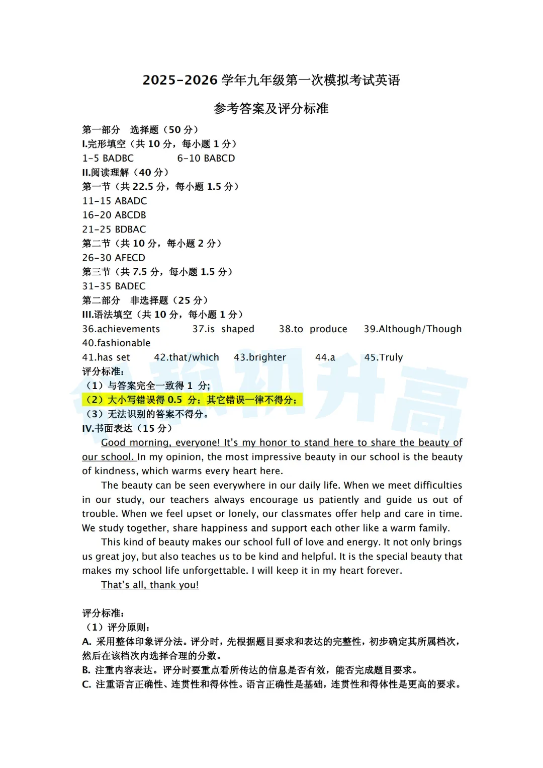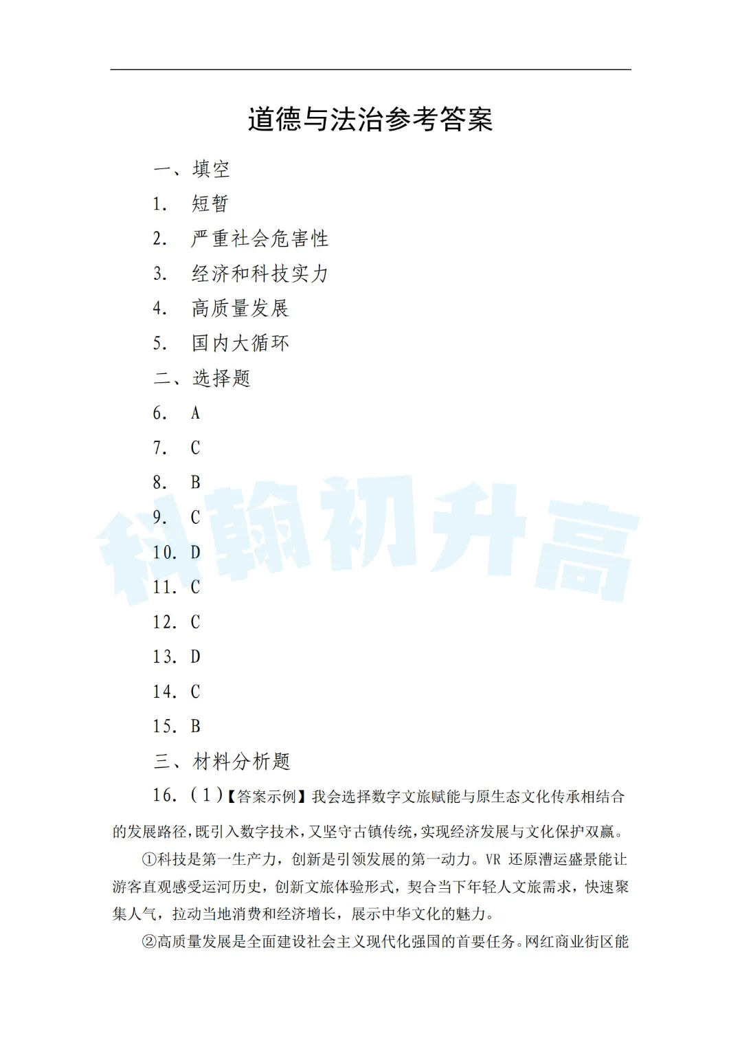 考了的同学快来对答案,没考的同学也可以领一份练一练。