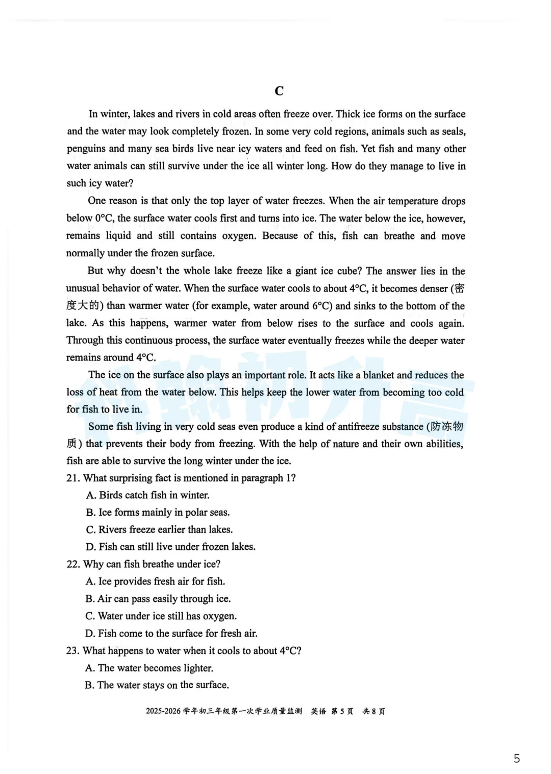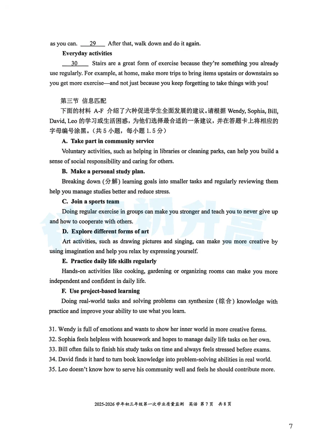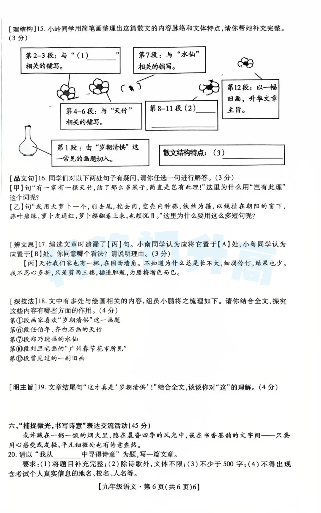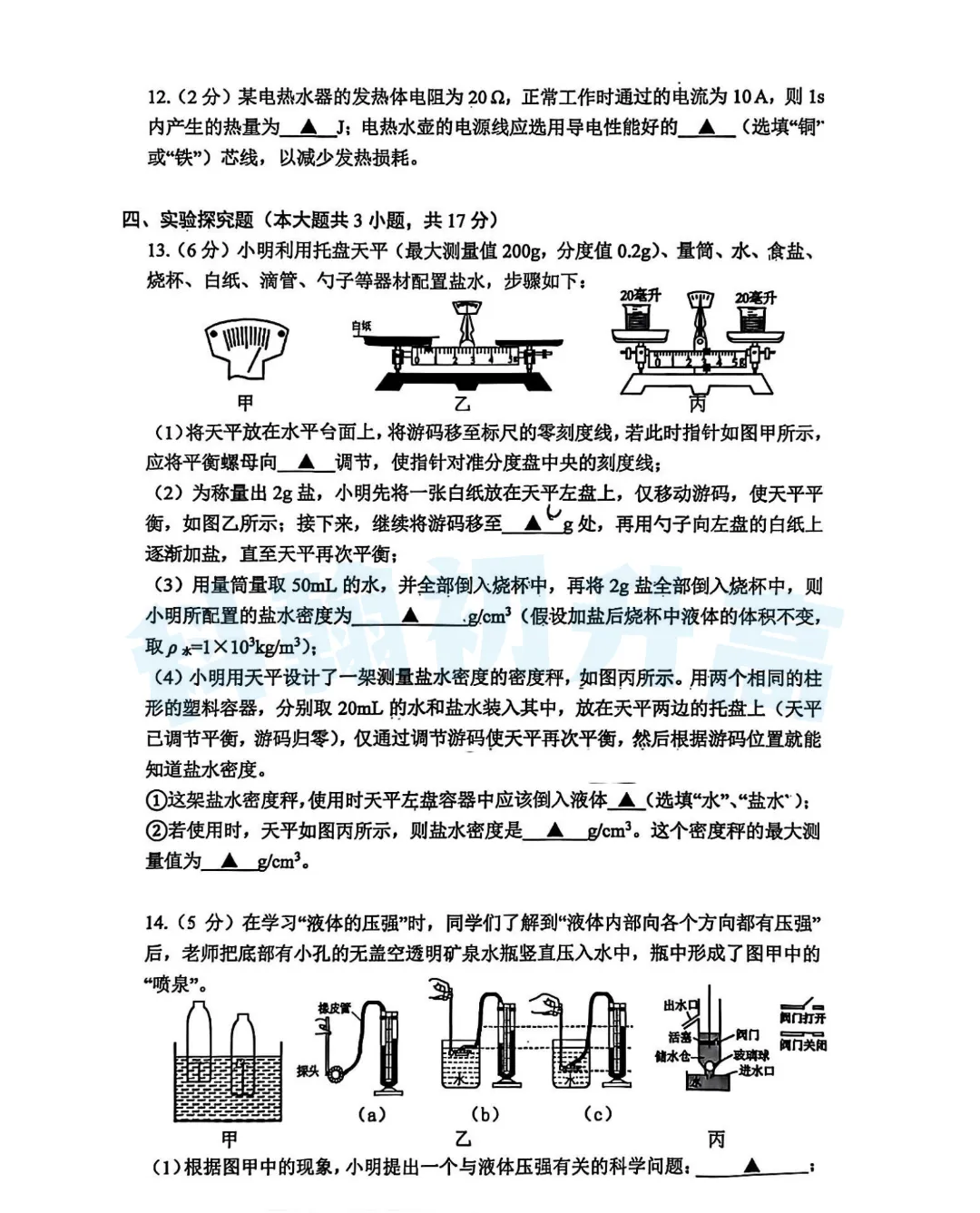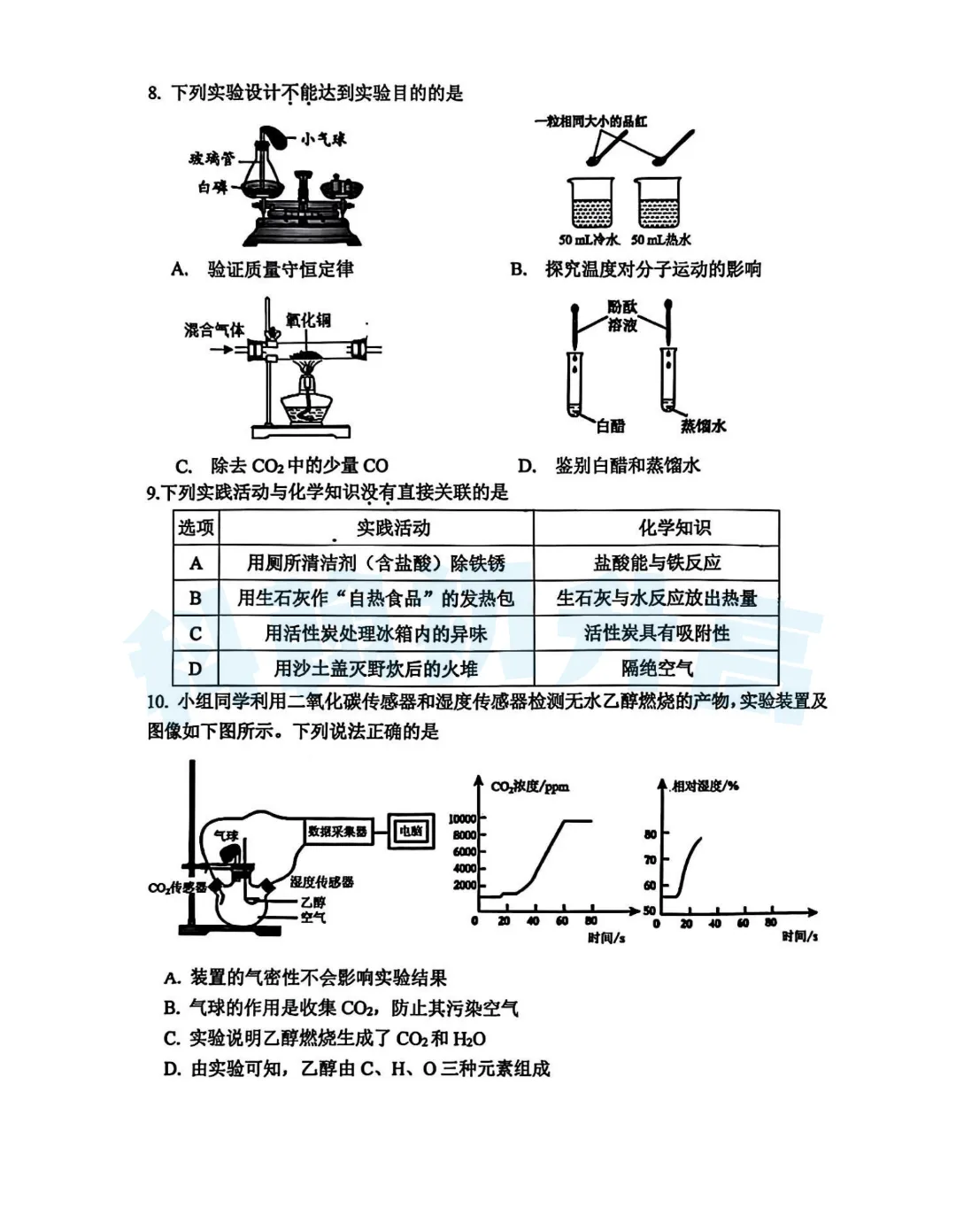 考了的同学快来对答案,没考的同学也可以领一份练一练。