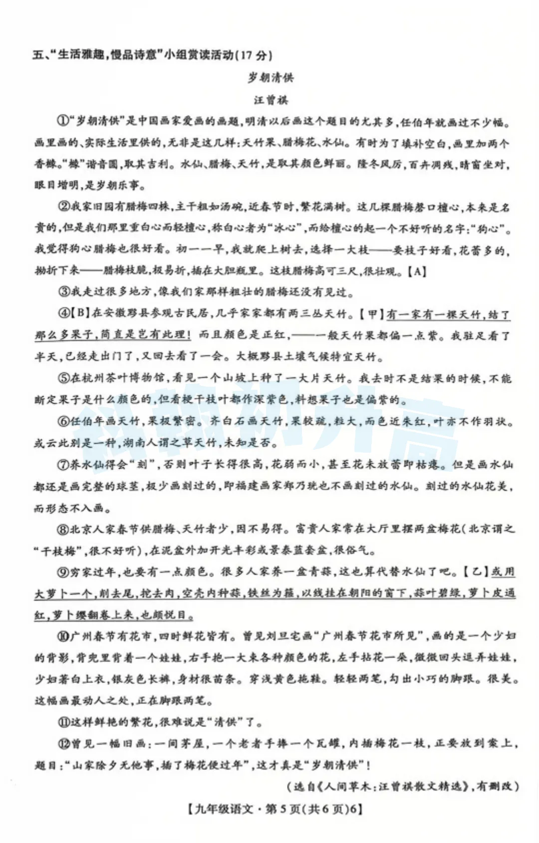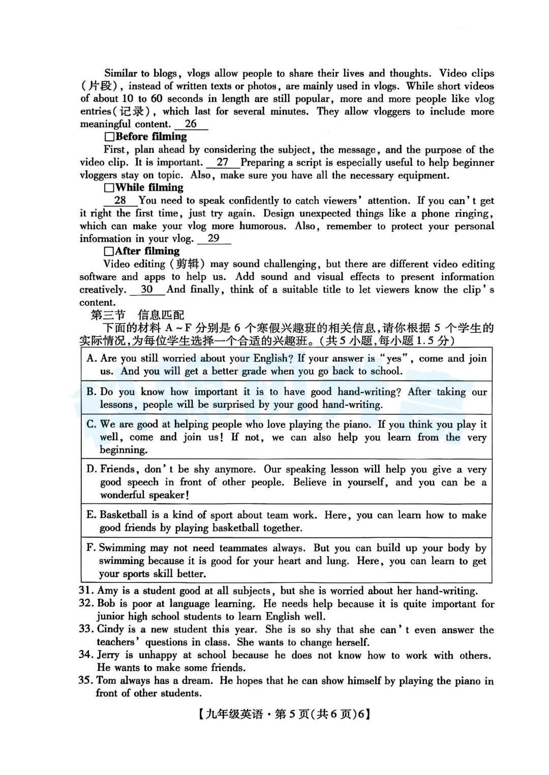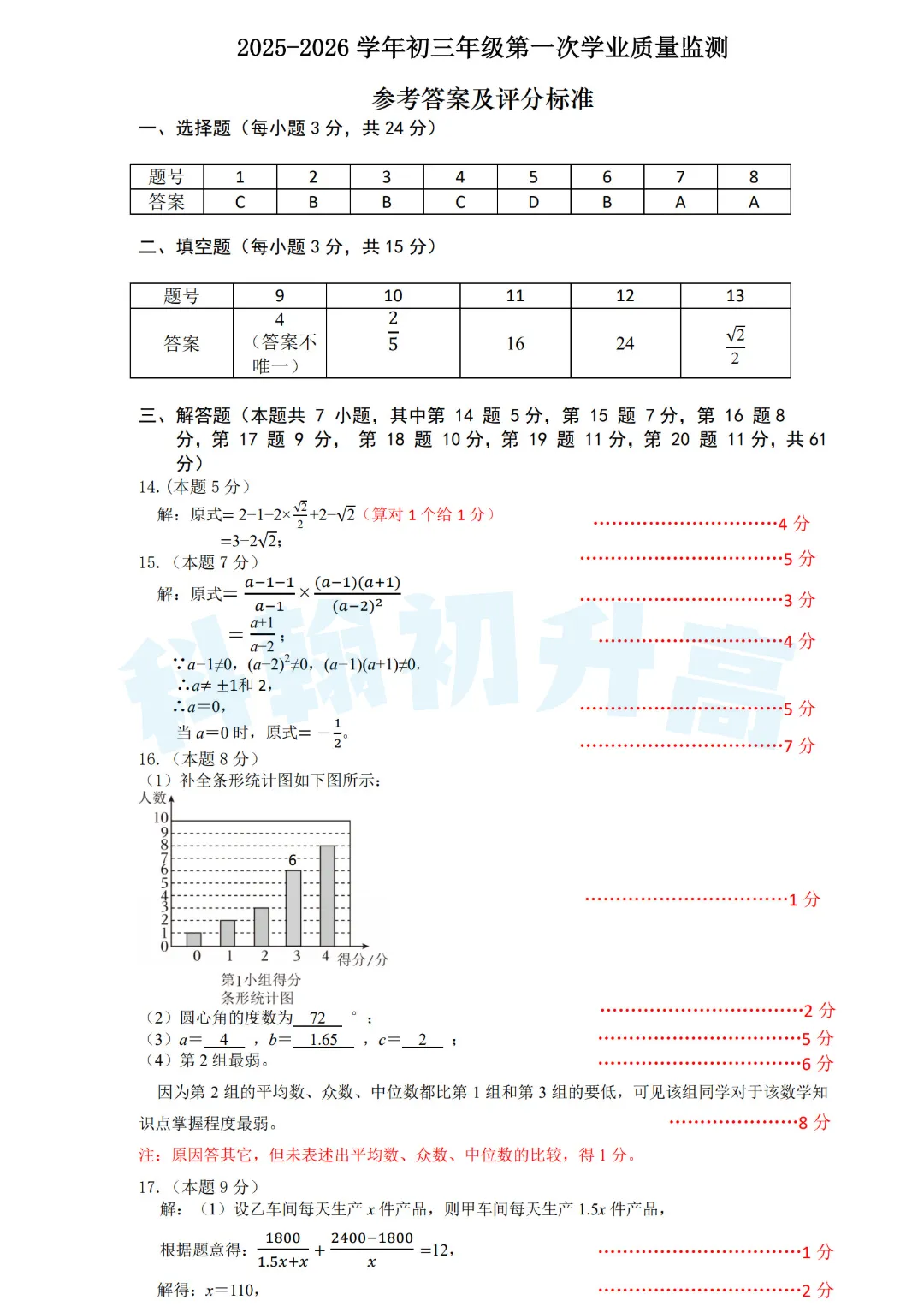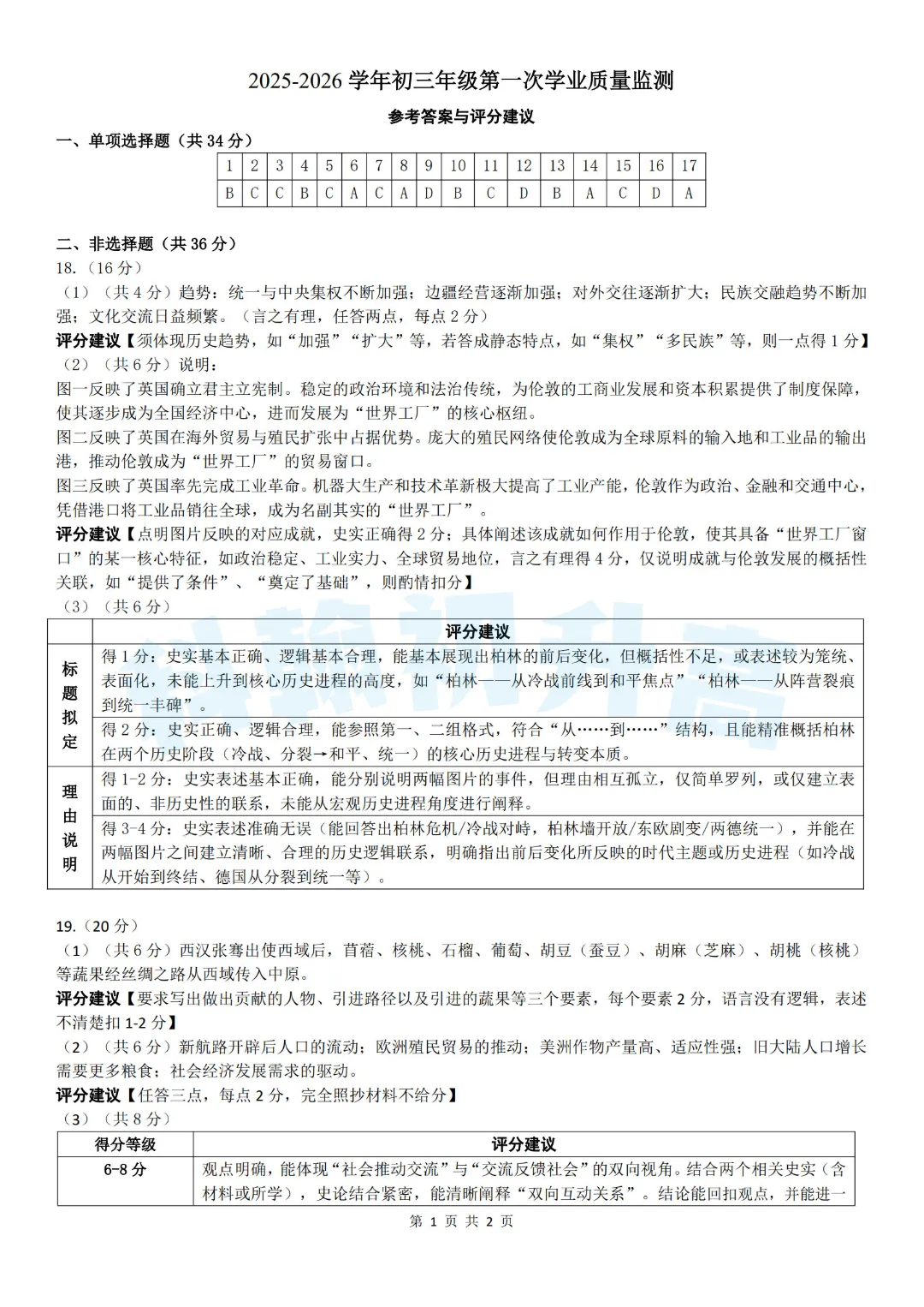 考了的同学快来对答案,没考的同学也可以领一份练一练。