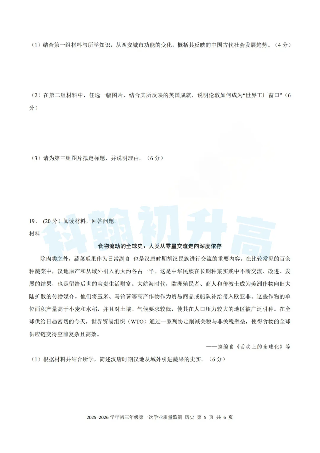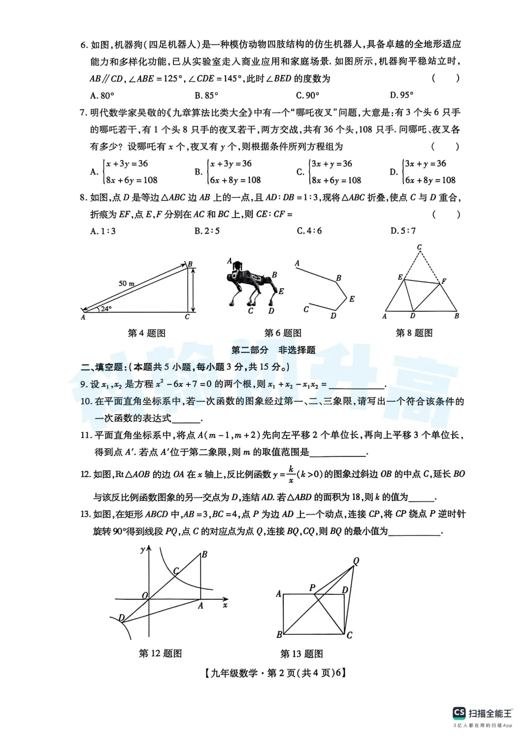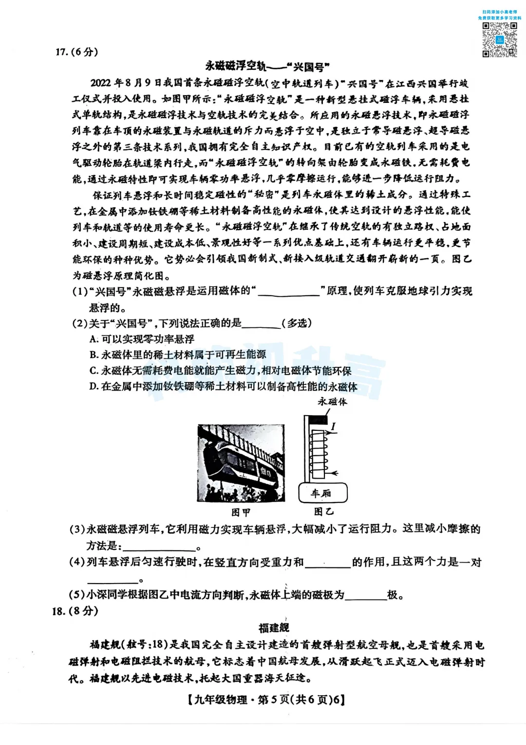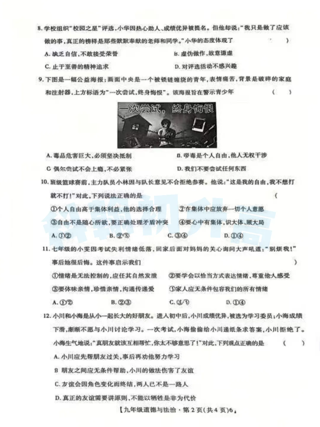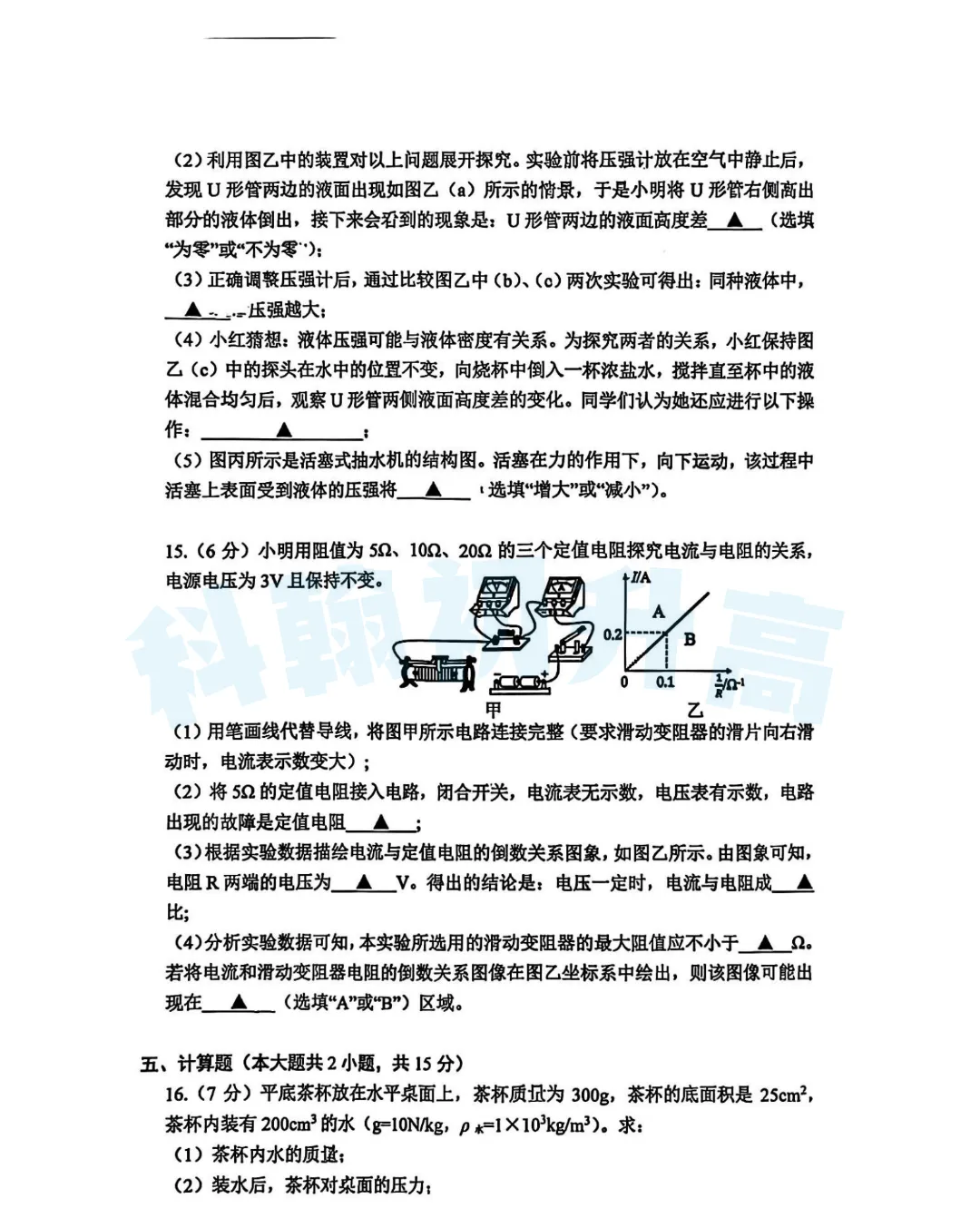 考了的同学快来对答案,没考的同学也可以领一份练一练。