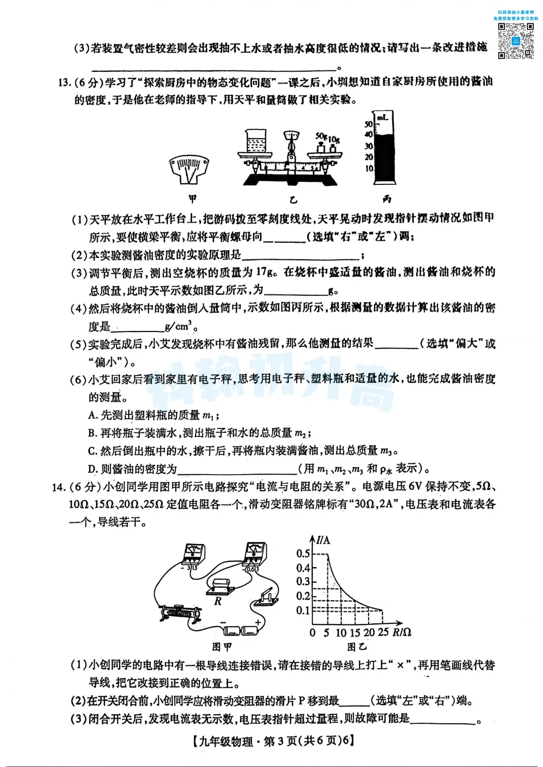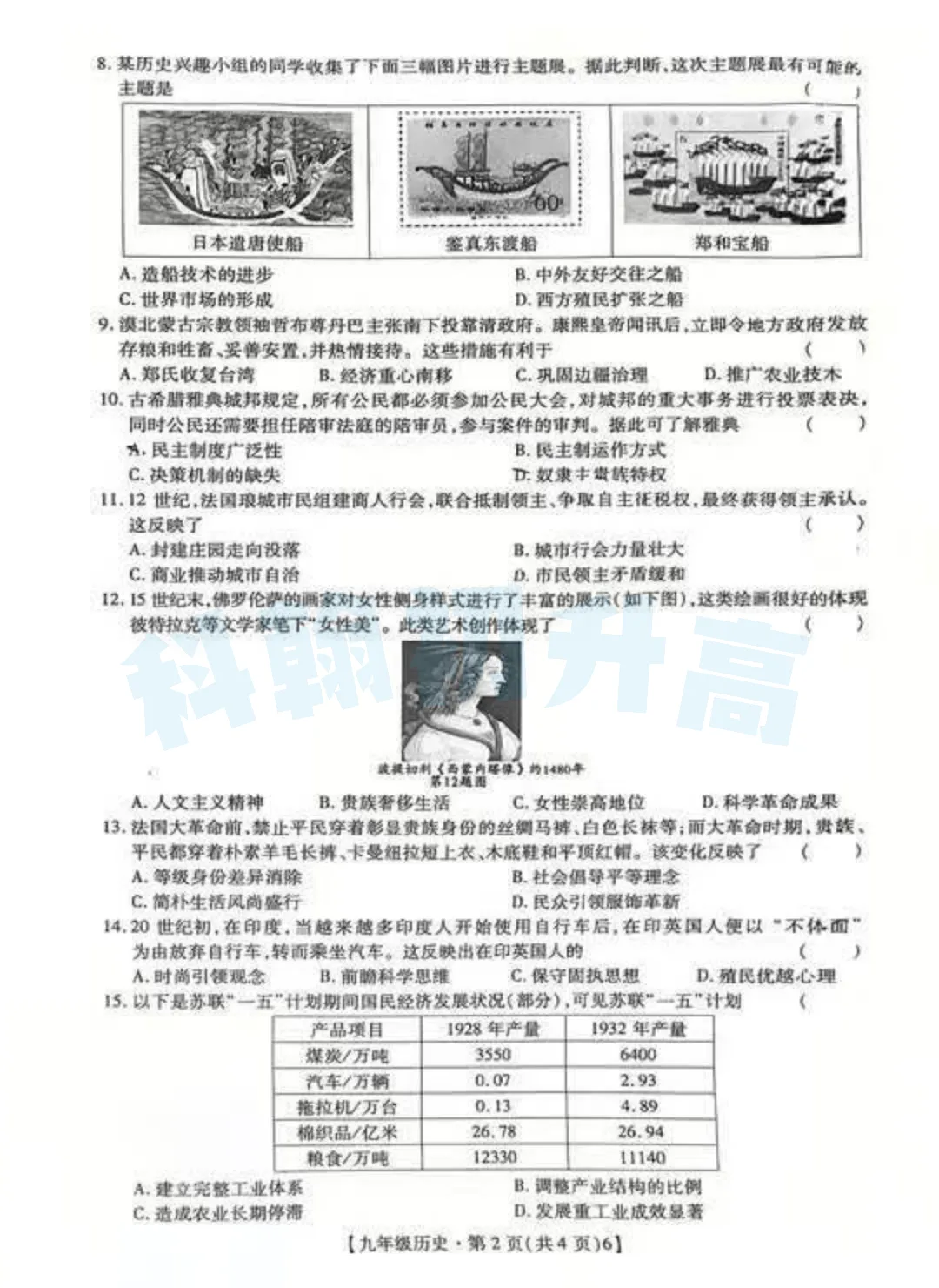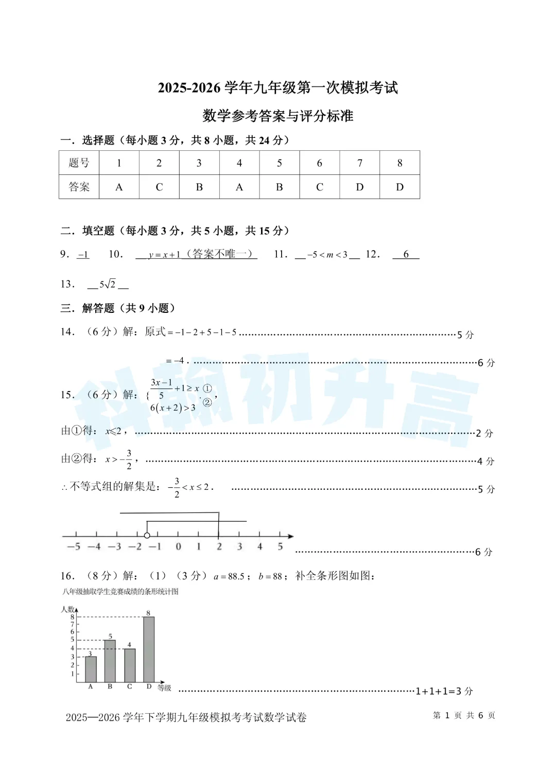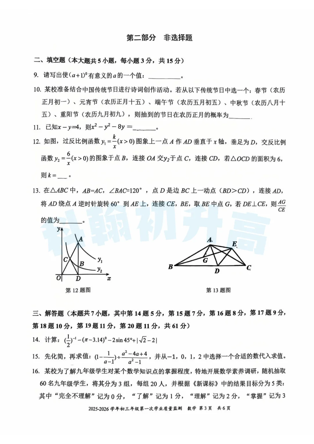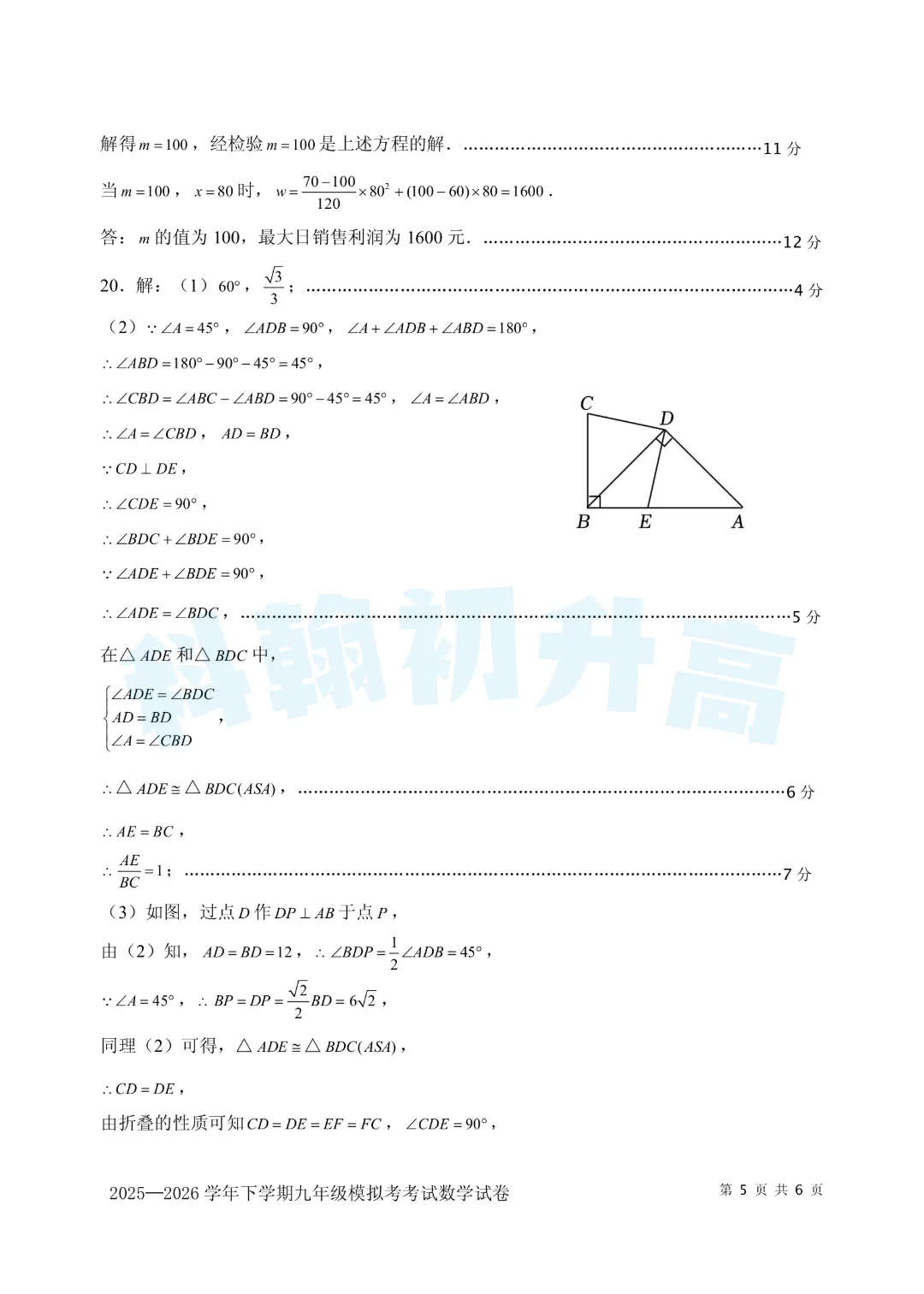 考了的同学快来对答案,没考的同学也可以领一份练一练。