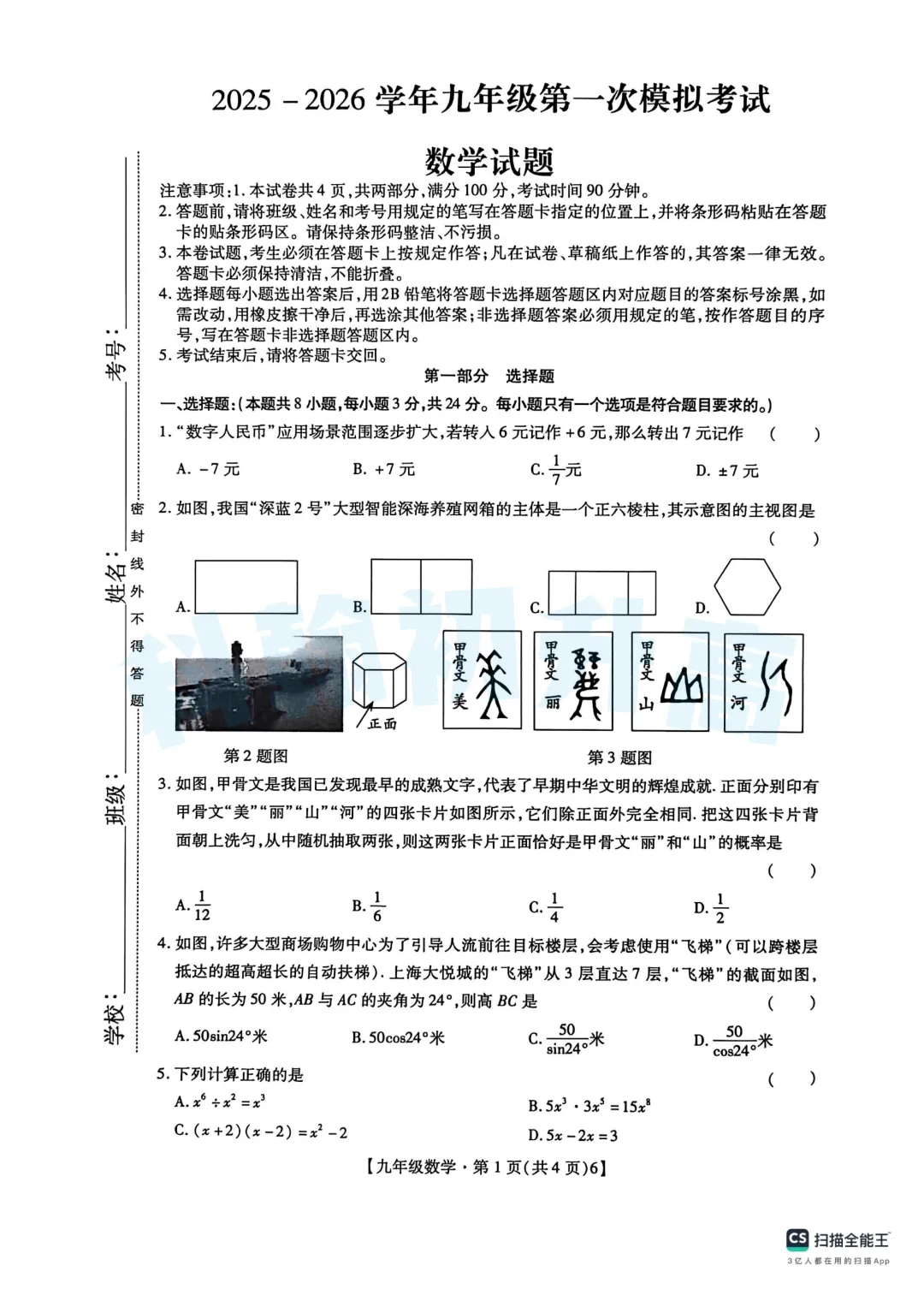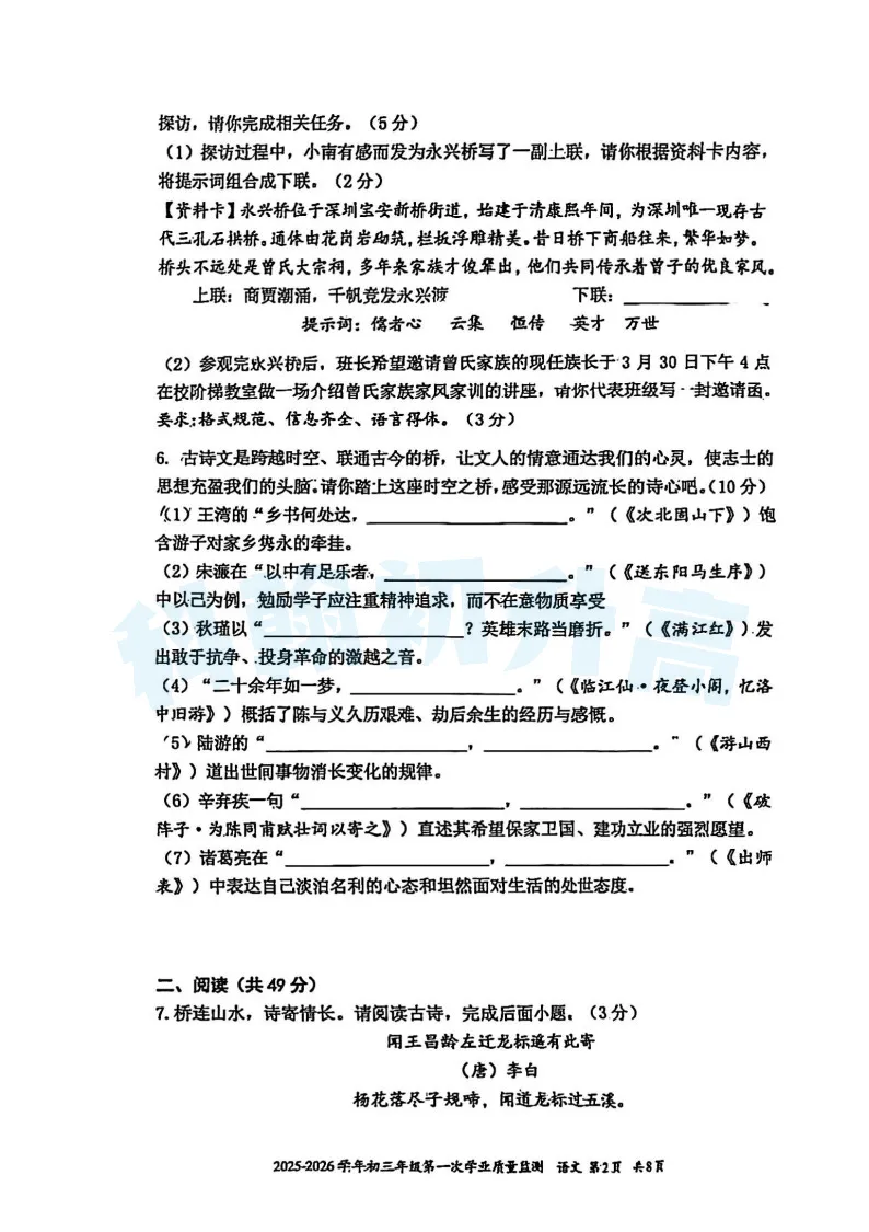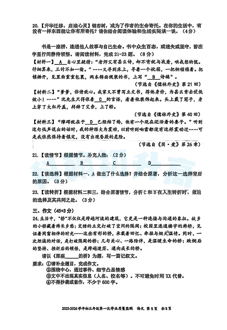 深中体系初三一模