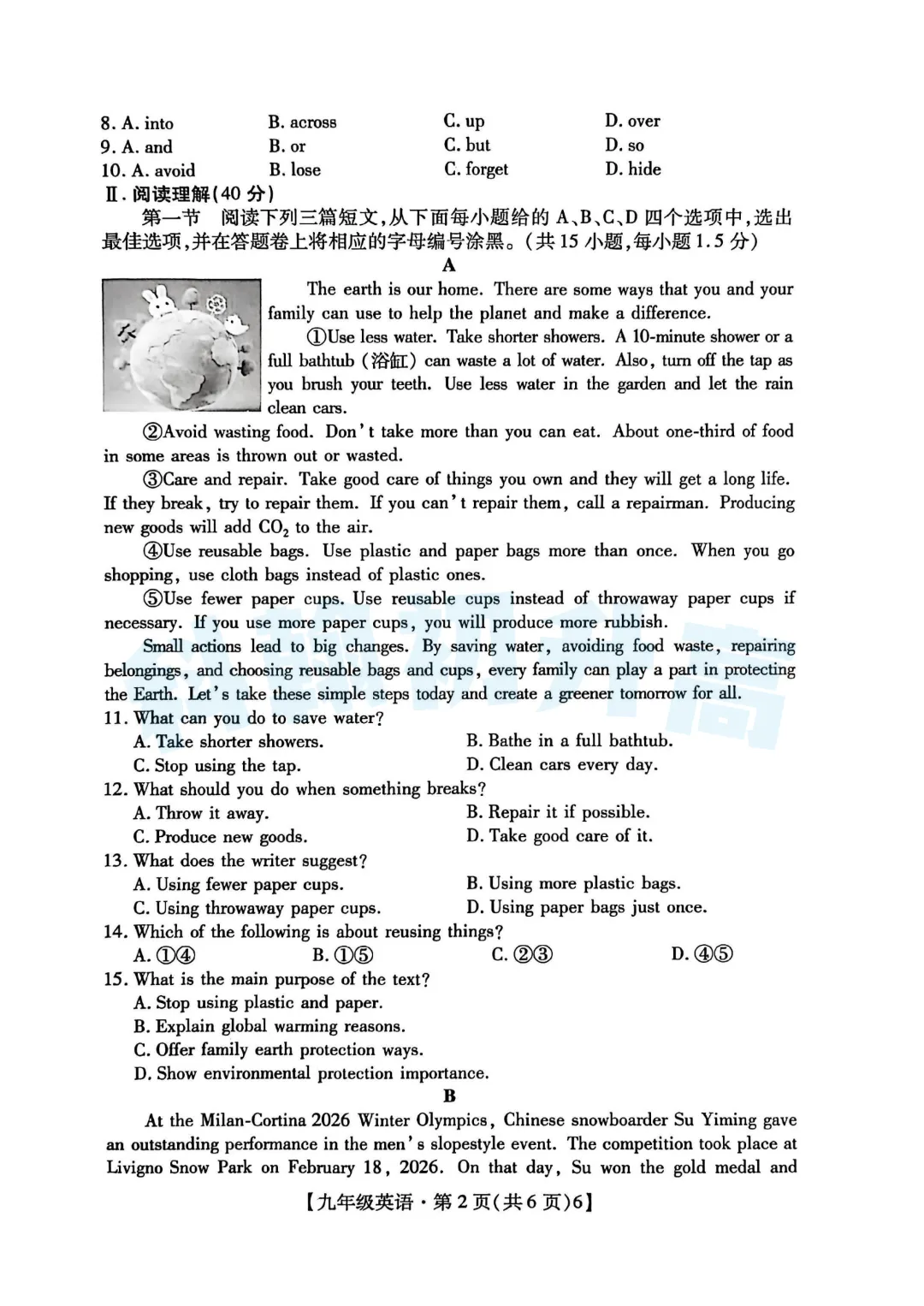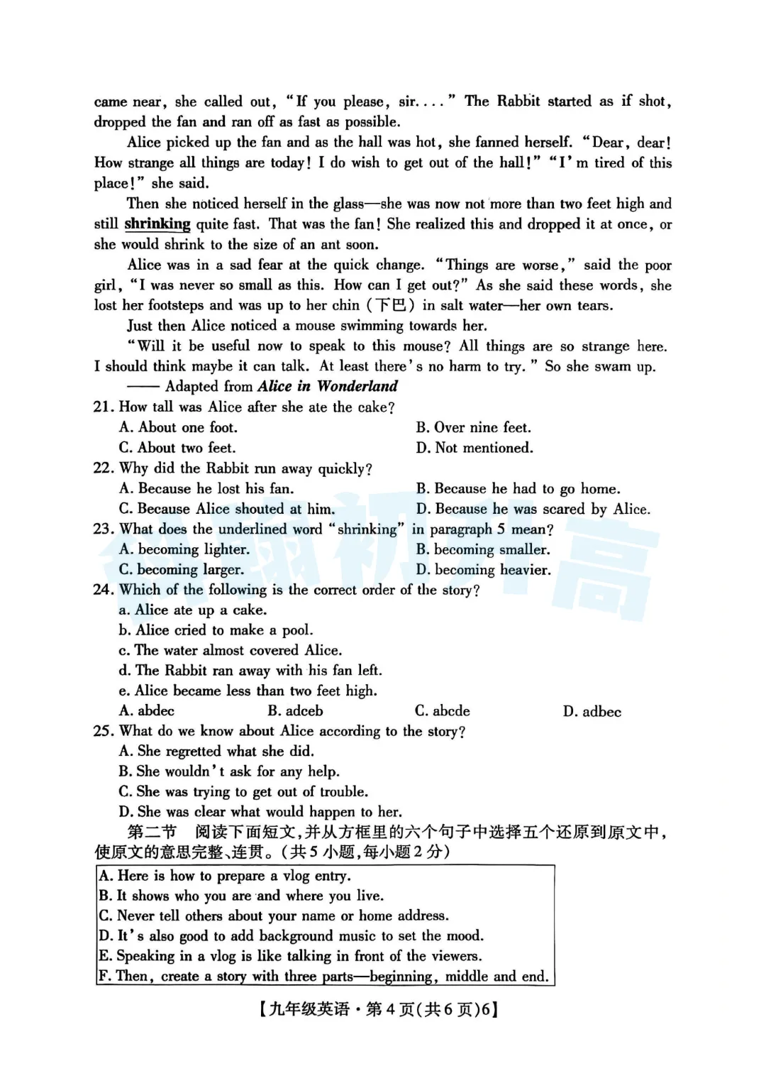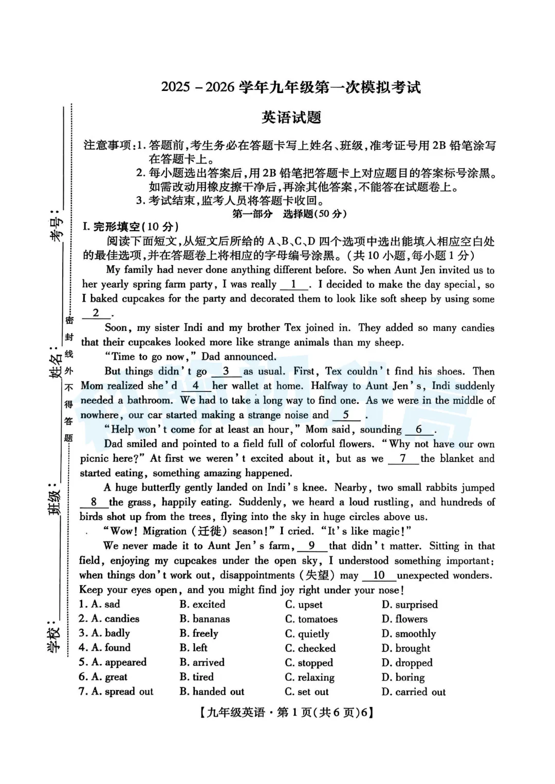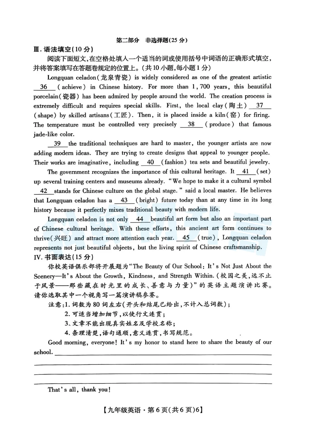 试卷+答案一览