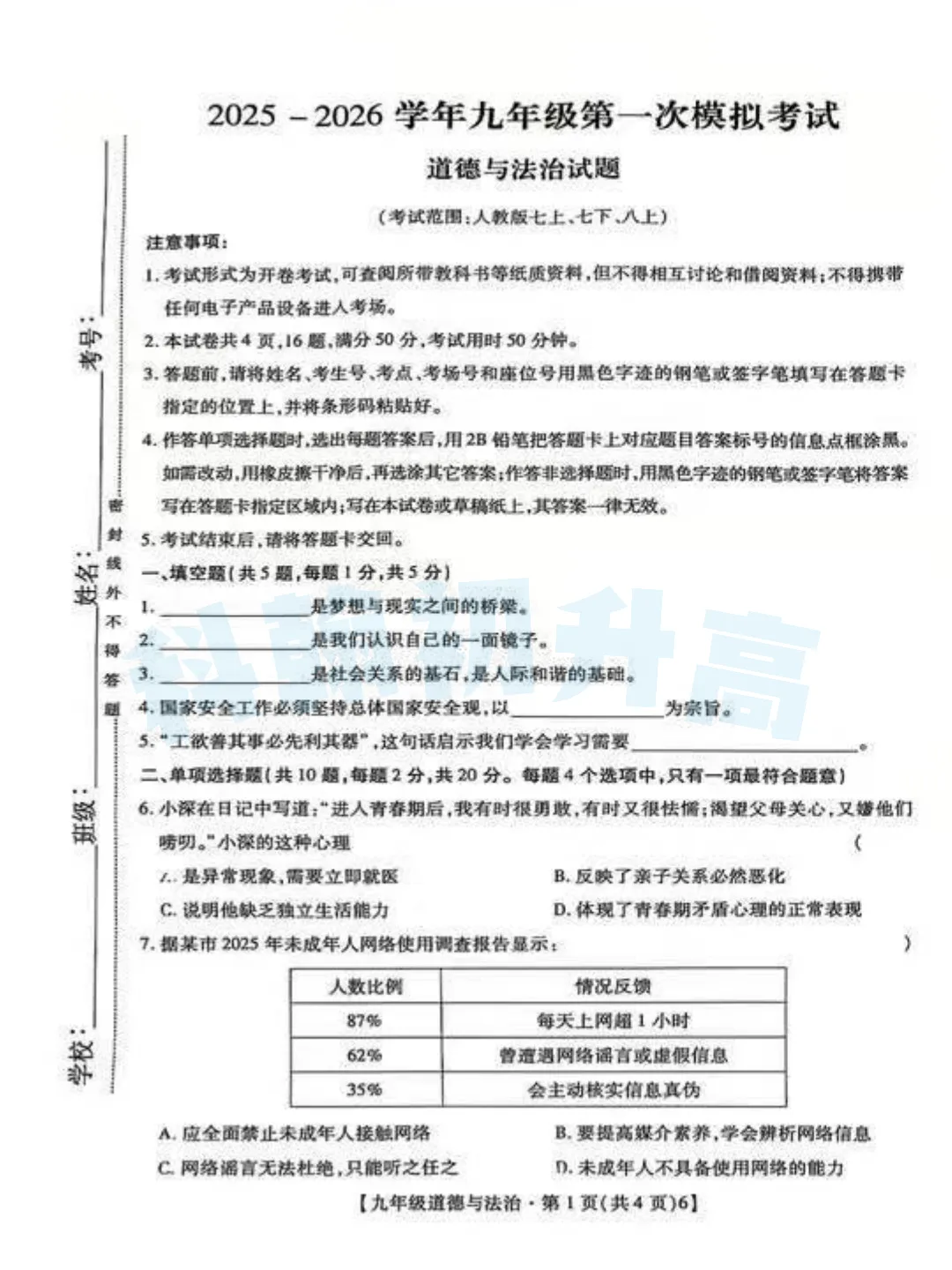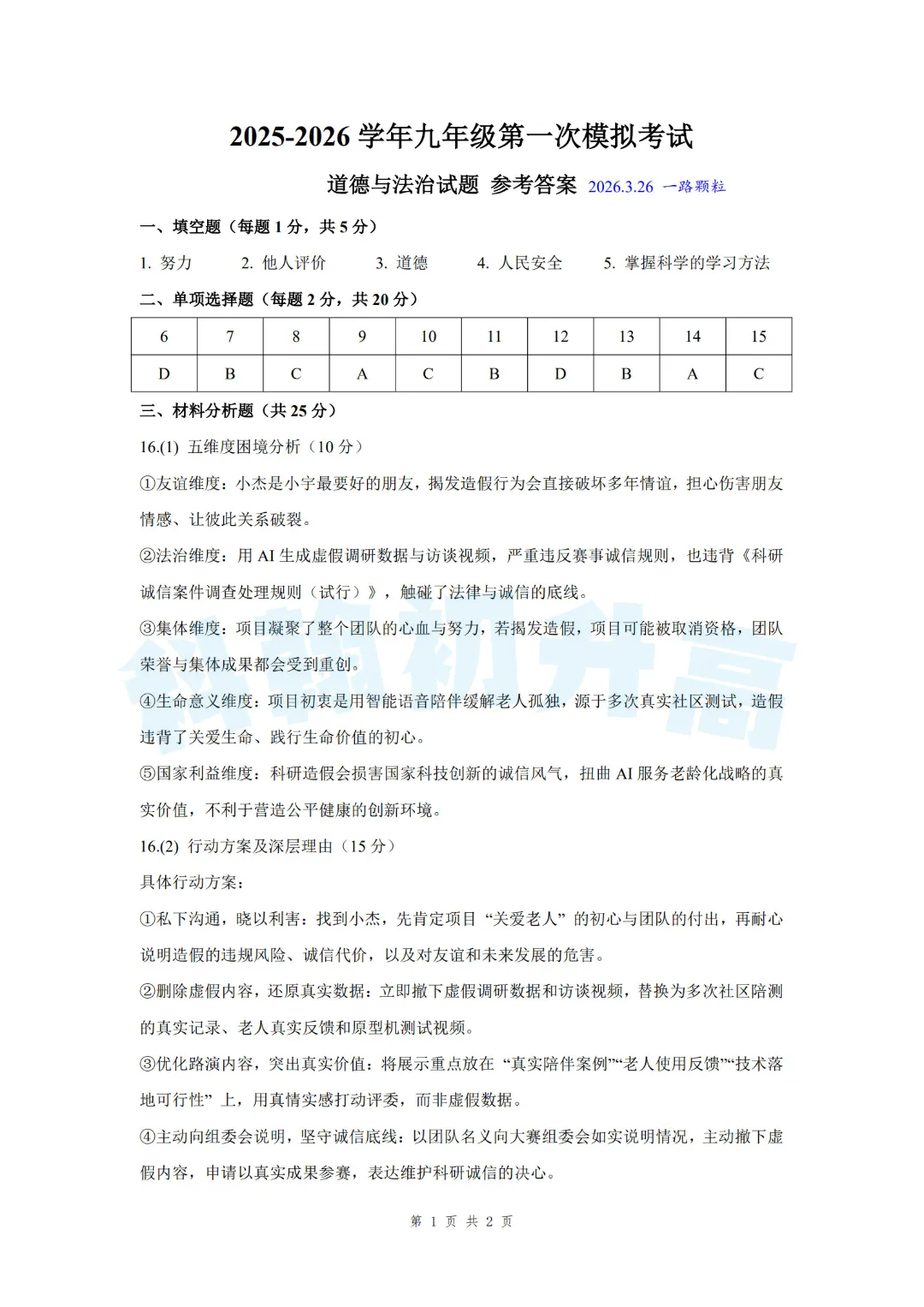 发送【2026一模】精准领取
