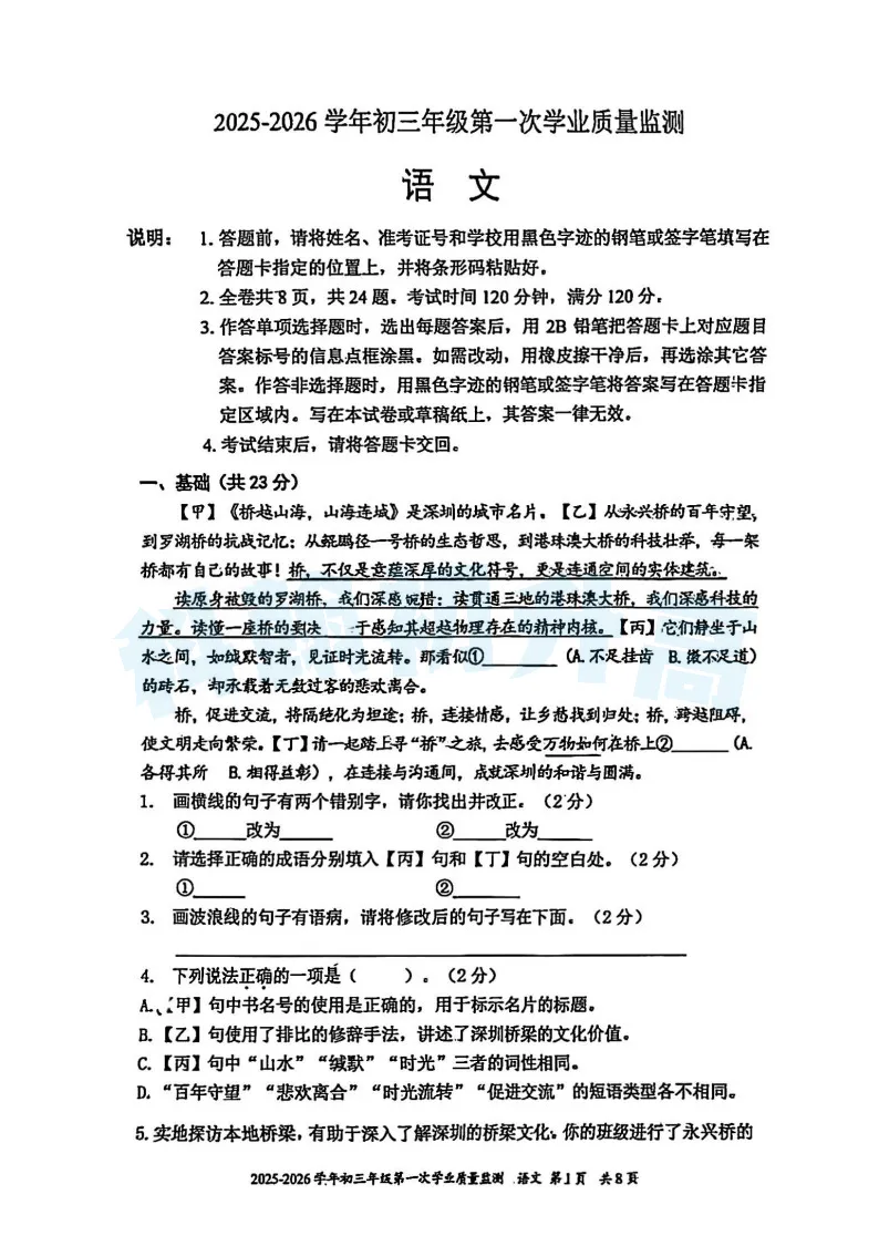 近期34校第一次联考、育才集团、深中体系、南实集团初三一模考试全科真题均已整理完毕,需要电子版的学生或家长,可按以下方式领取。