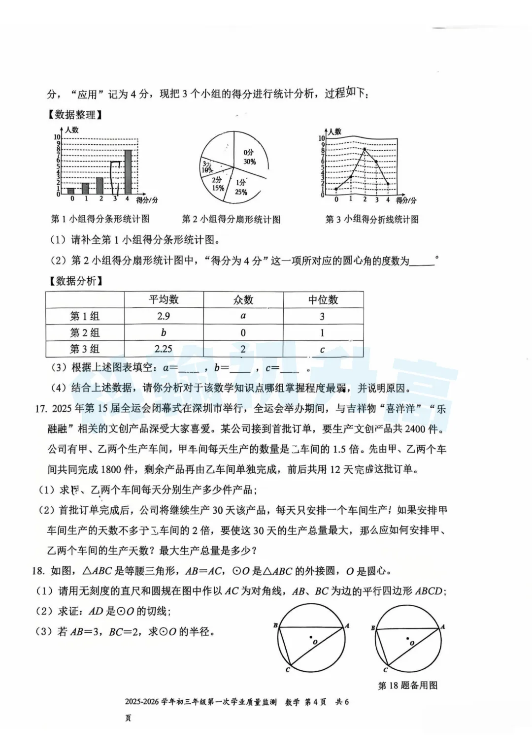 龙岗区中考适应性考试:4月1日-2日