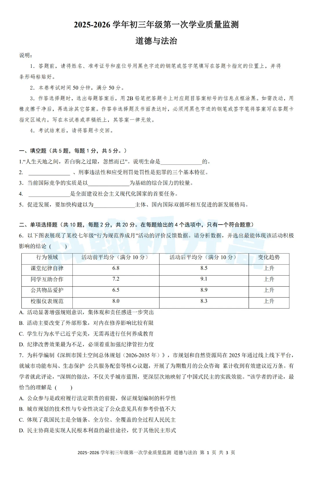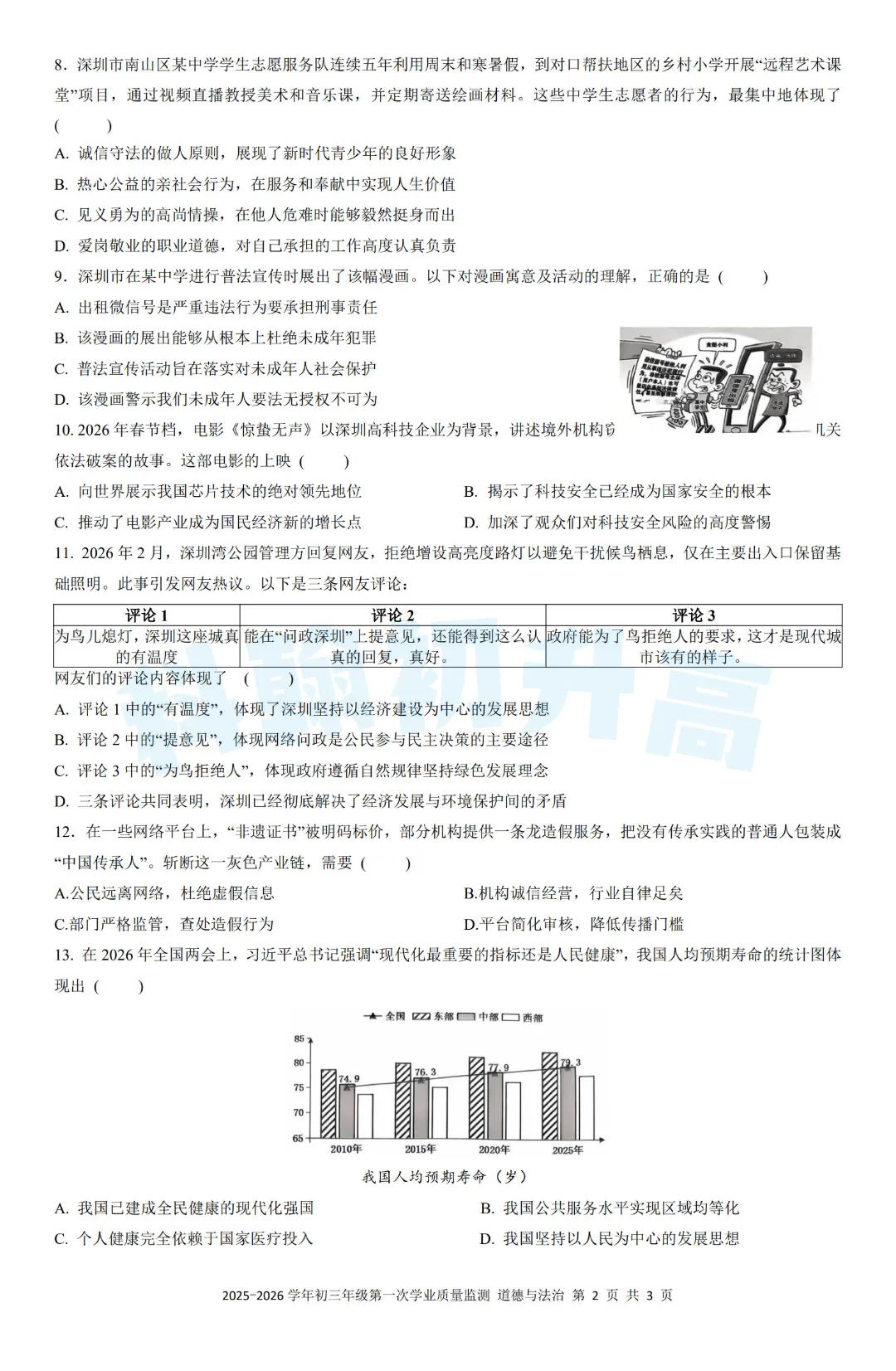 2026深圳初三考试安排