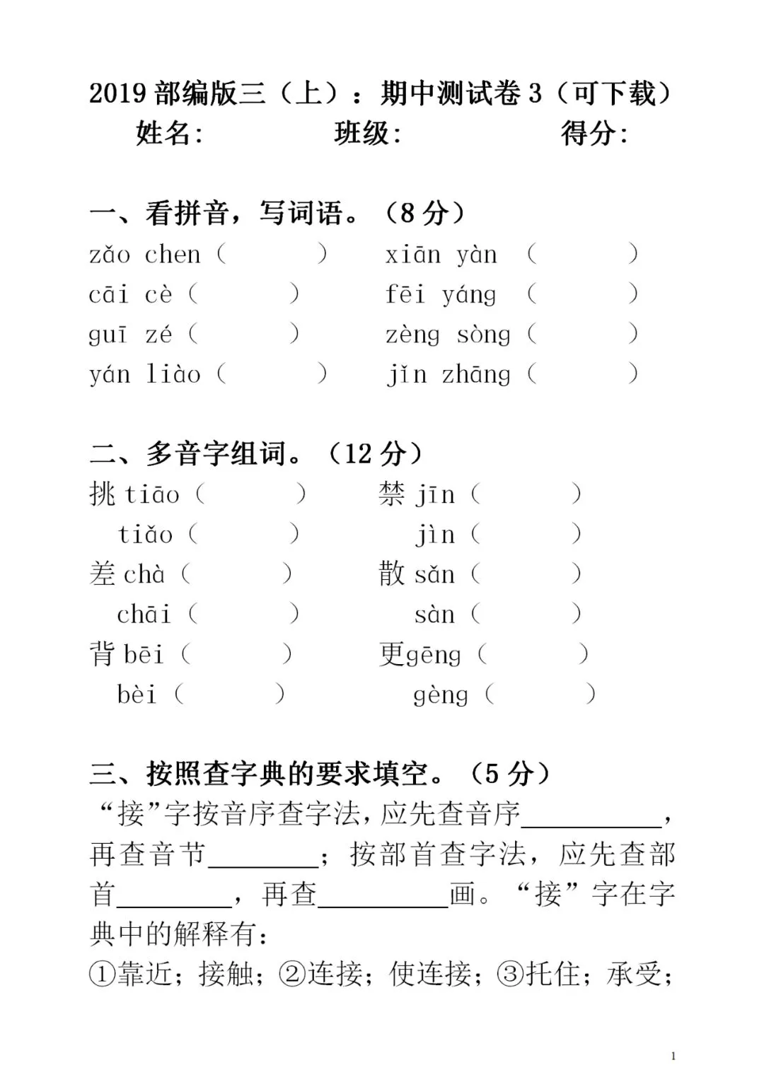 部编版三(上)词语积累 第21课《大自然的声音》