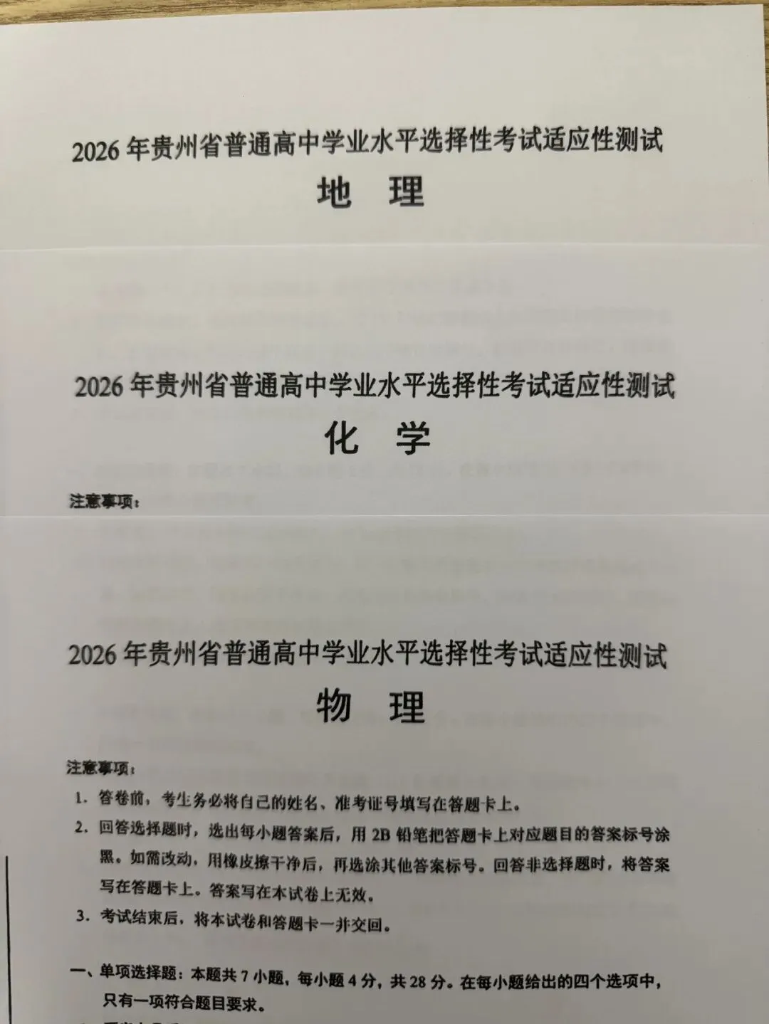 考试名称:贵州省高三适应性统测2026年贵州省高中学业水平选择性考试适应性测试(贵阳市/贵安市/毕节市/遵义市/黔东南州/黔西南州/铜仁市)