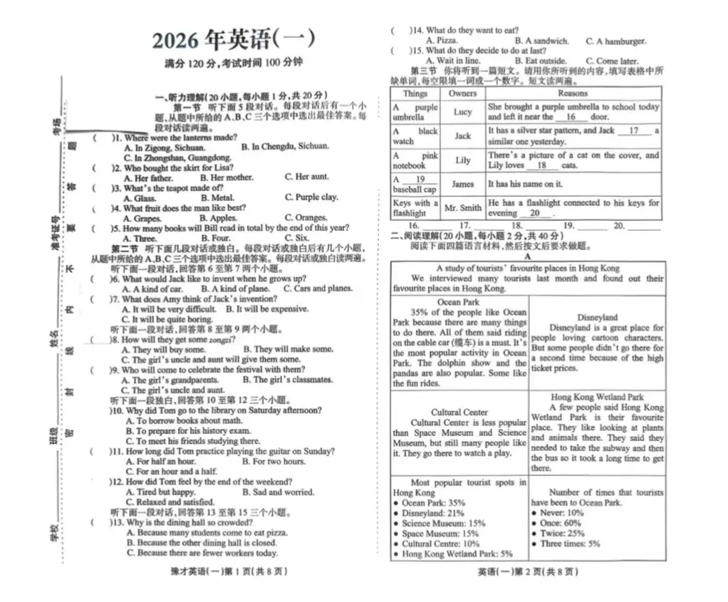 2026年周口多校联考英语一模试卷及答案
