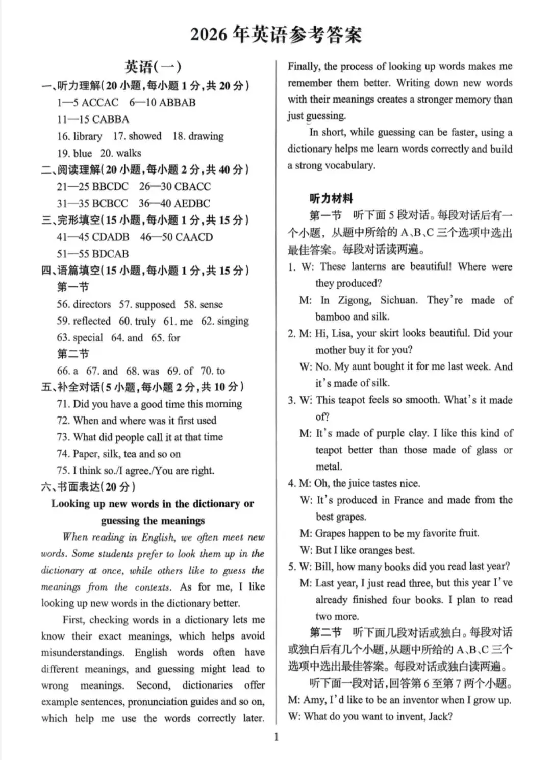 2026安徽中考名校互鉴(一)试卷B英语试卷+答案+听力原文