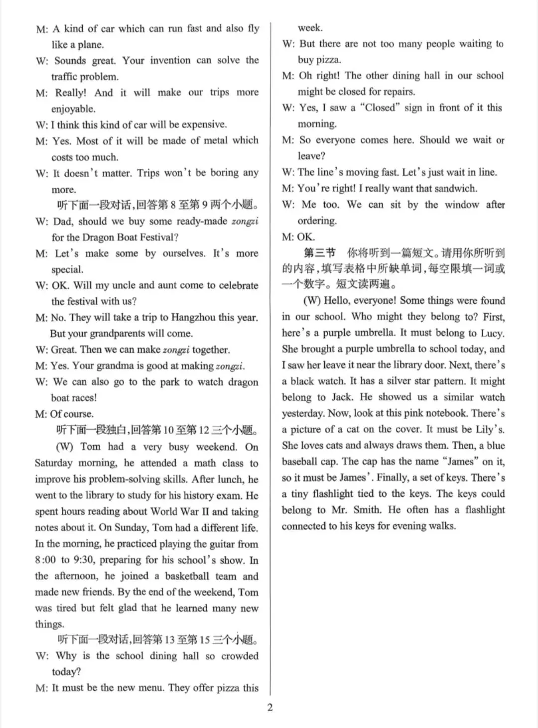 7.2603杭二适应性技术试卷
