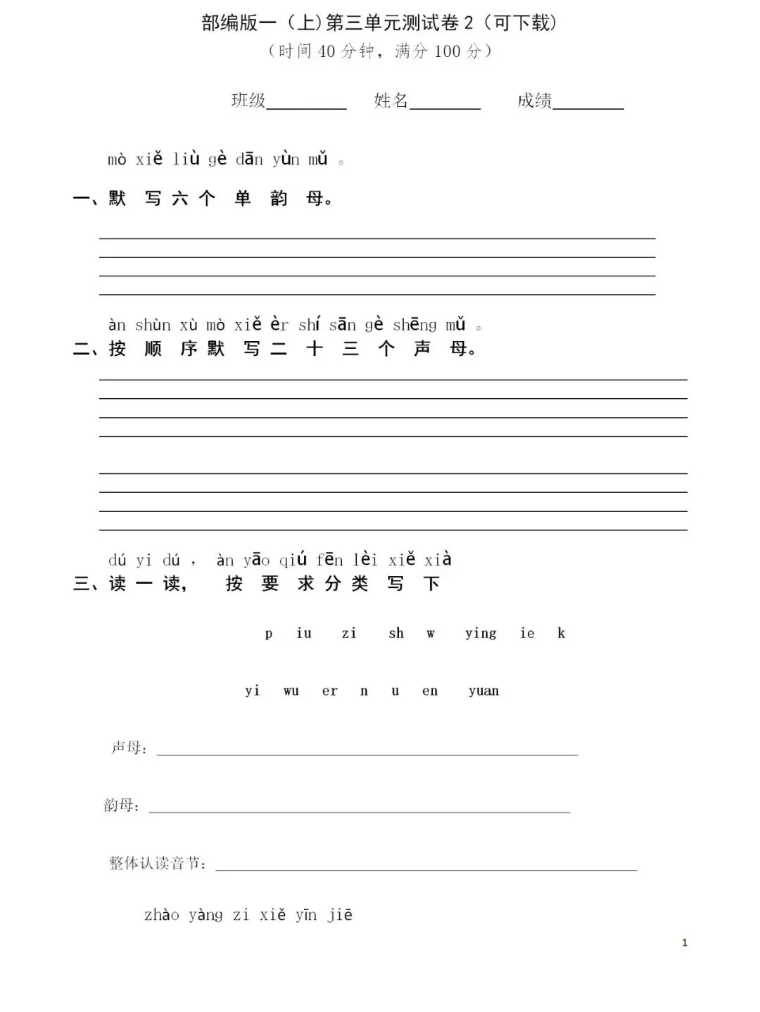 部编语文1-6年级上册第五单元测试卷(可下载)
