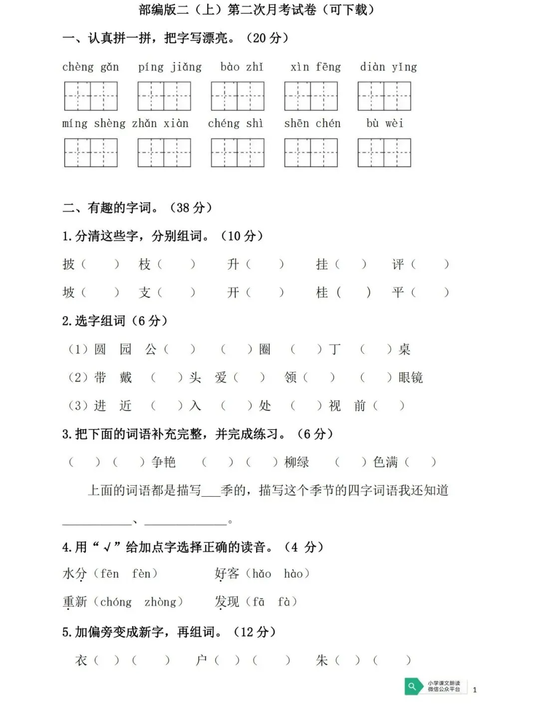 一年级(下)第二单元测试卷2(可下载)