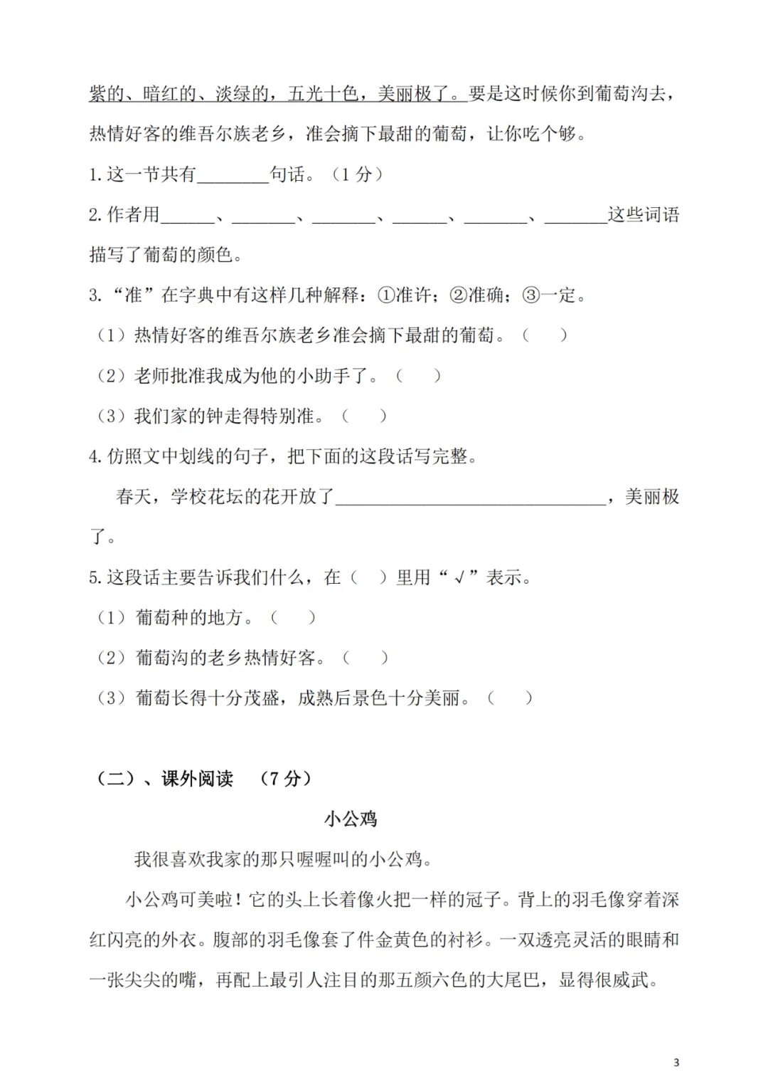 2019部编版三(上):期中测试卷3(可下载)