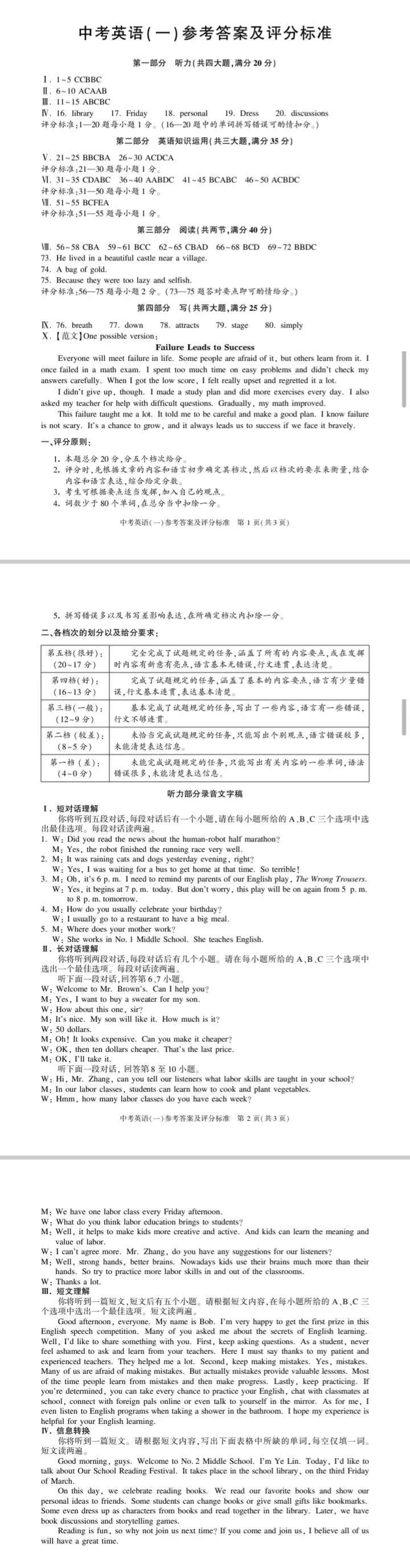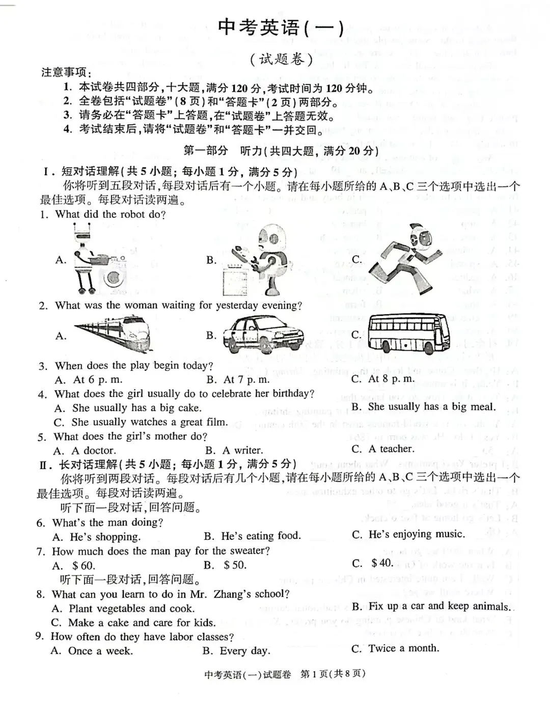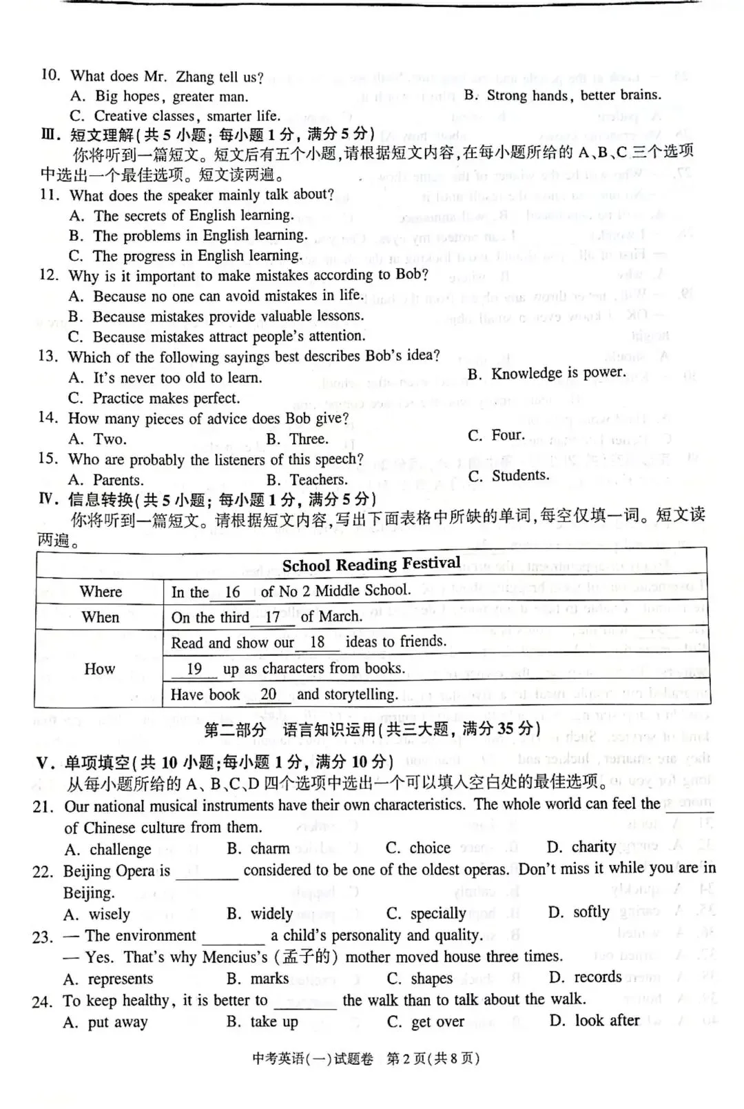 2026安徽中考名校互鉴(一)试卷B英语试卷+答案+听力原文