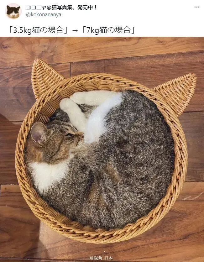 同样的篮子,装3.5kg的猫和装7kg猫的区别@视角_日本
