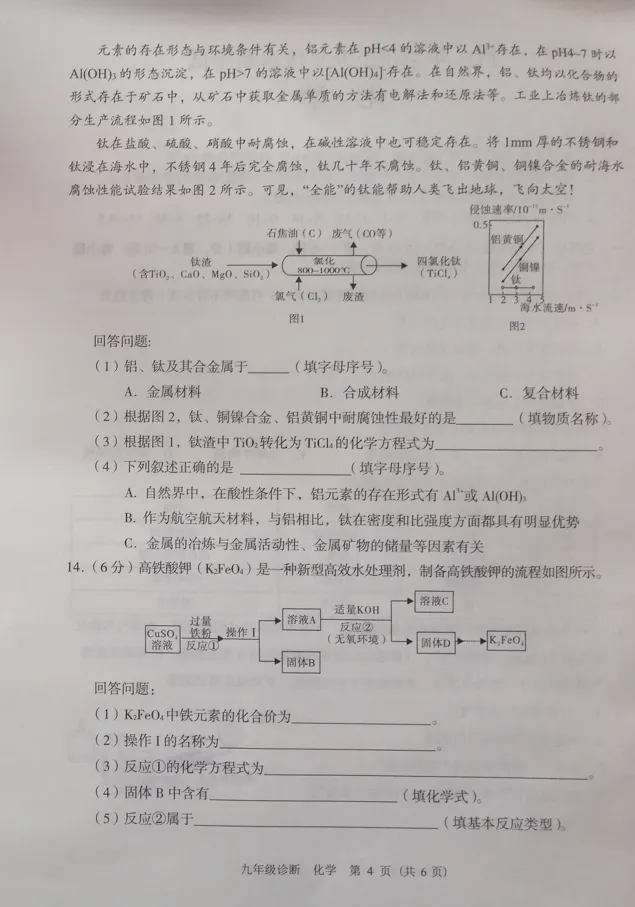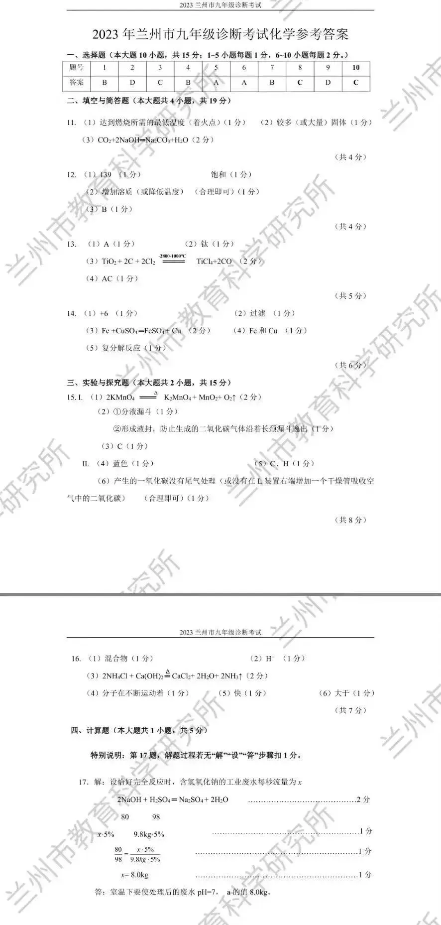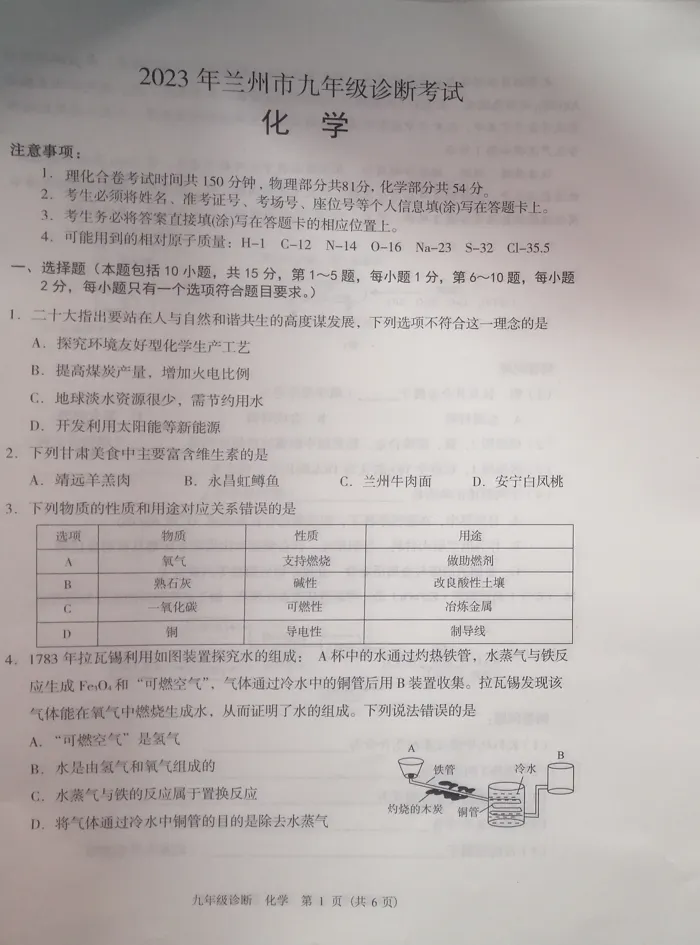 >中考模拟┃2023年兰州市中考一诊化学试卷及答案