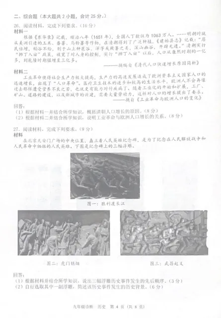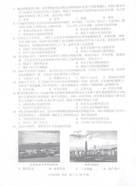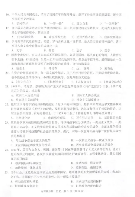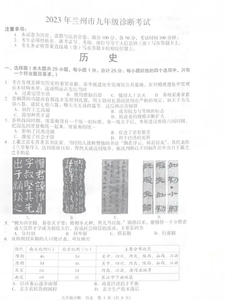 >中考模拟┃2023年兰州市中考一诊历史试卷及答案