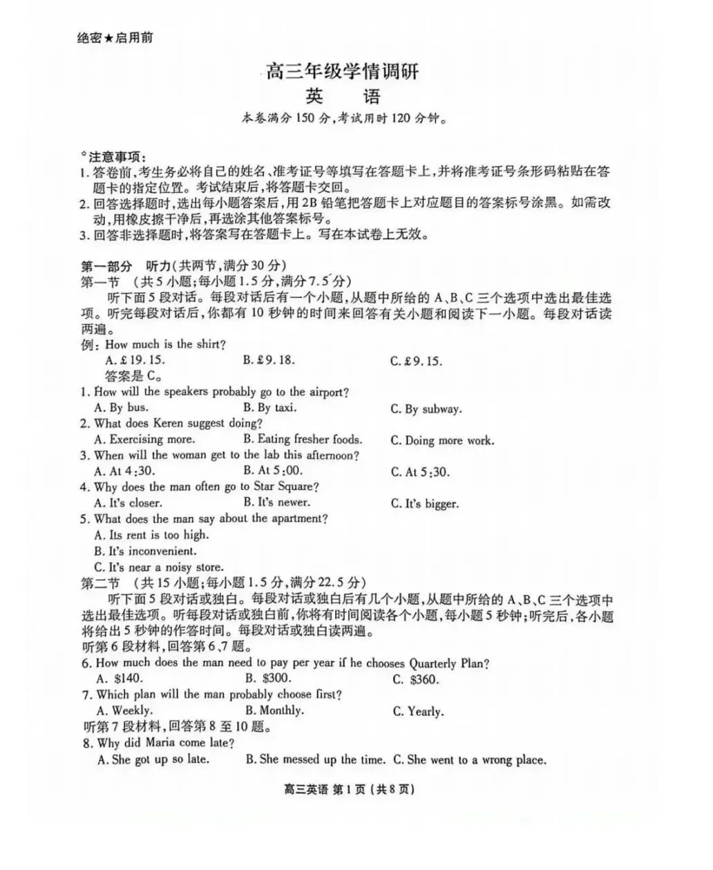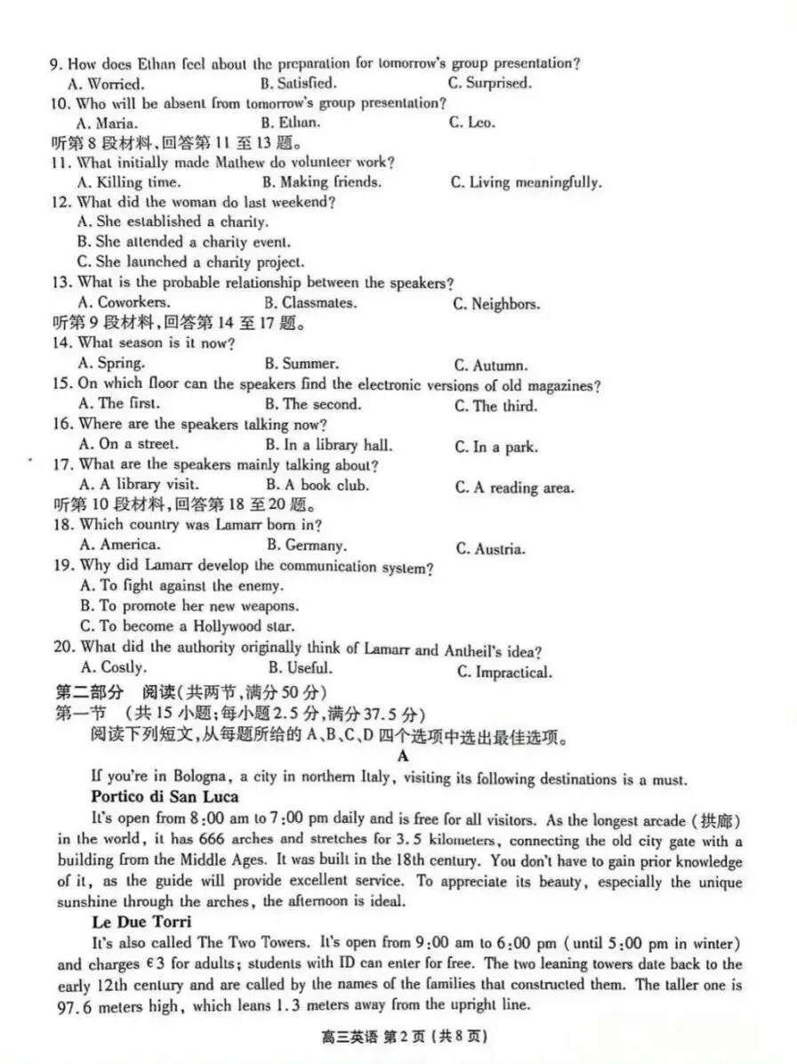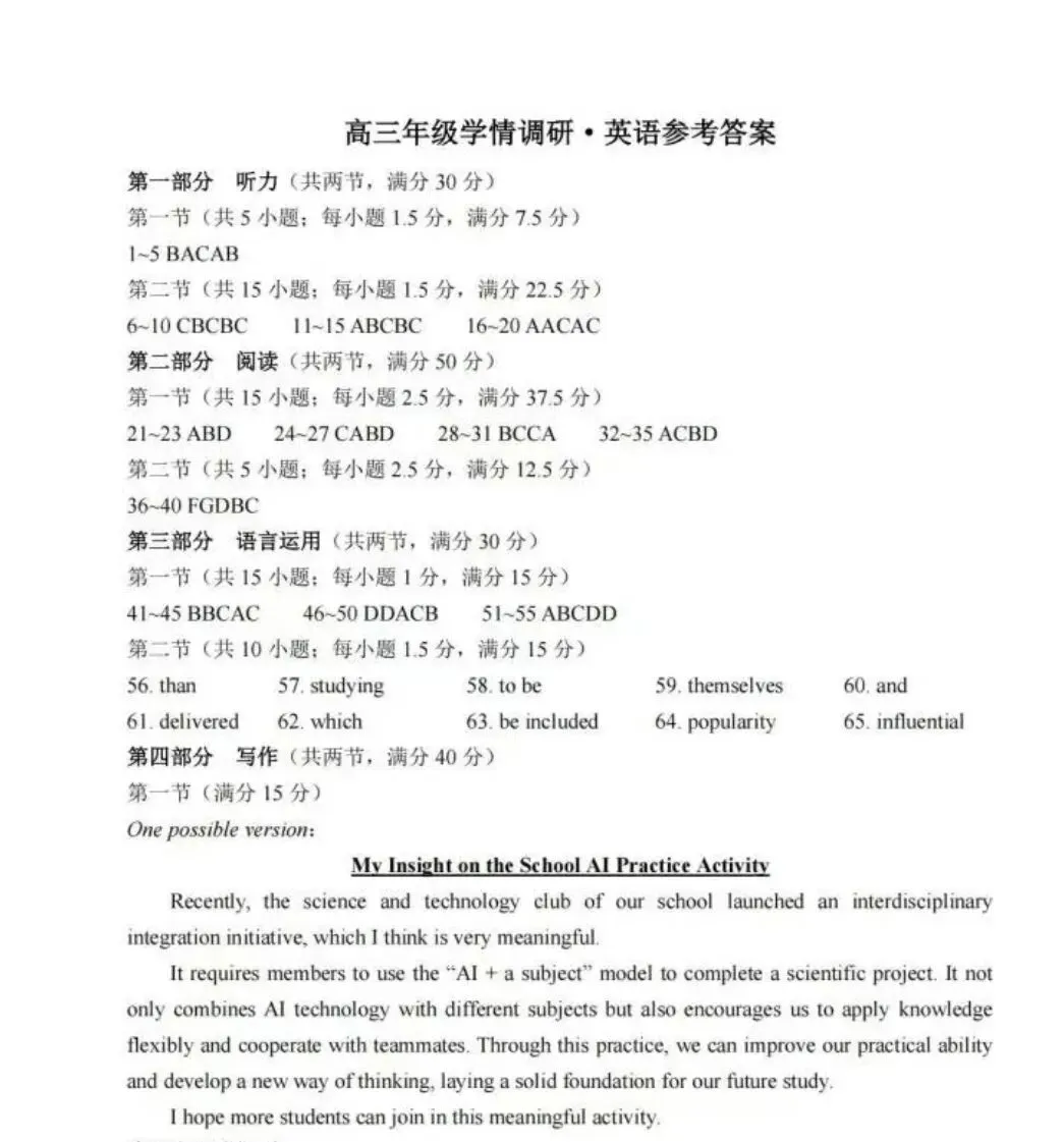 厦门二检试卷&答案分享!(最新资料包持续更新中)