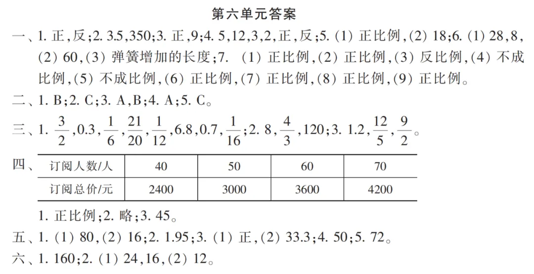 小学生数学报配套试卷答案查询(六年级1~5单元)|特别关注
