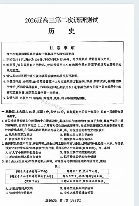 中考模拟┃2023年兰州市中考一诊历史试卷及答案
