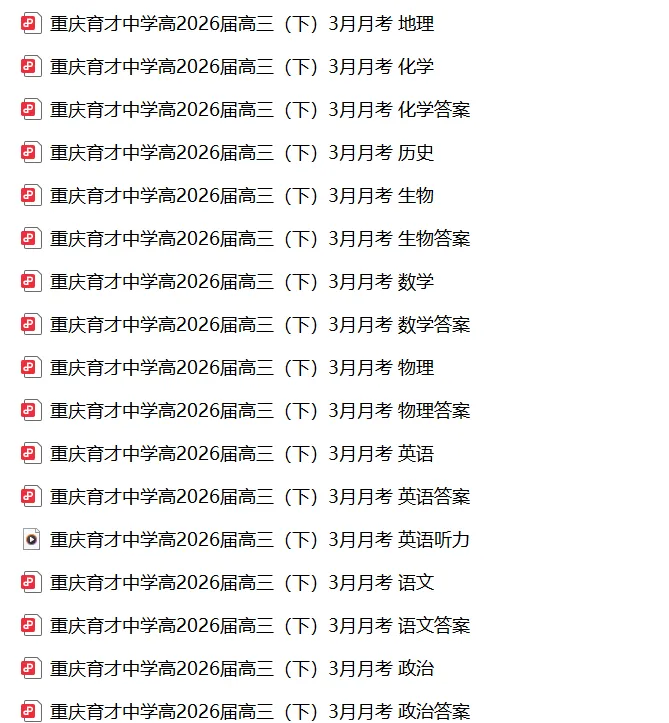 >【试卷】重庆育才中学高2026届高三(下)3月月考(全科)
