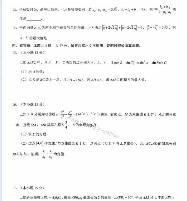 2026年新乡一模、焦作一模试卷及答案