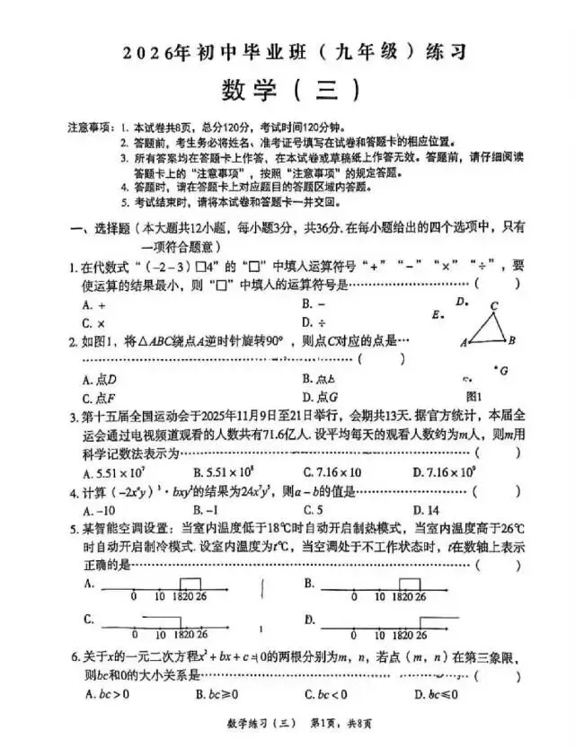 >【模拟试卷】2026年河北省石家庄高新区『数学』试卷!