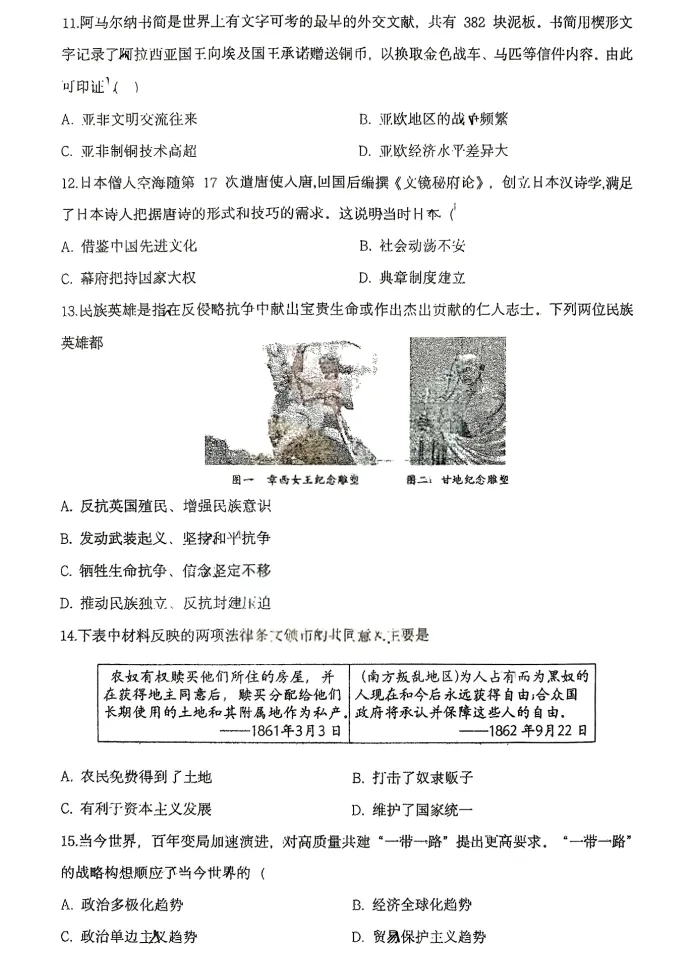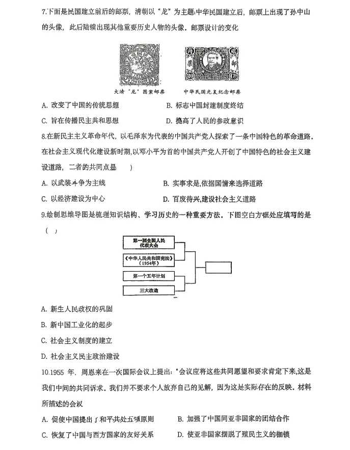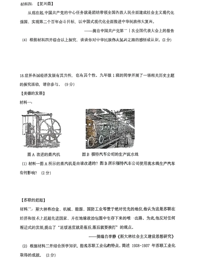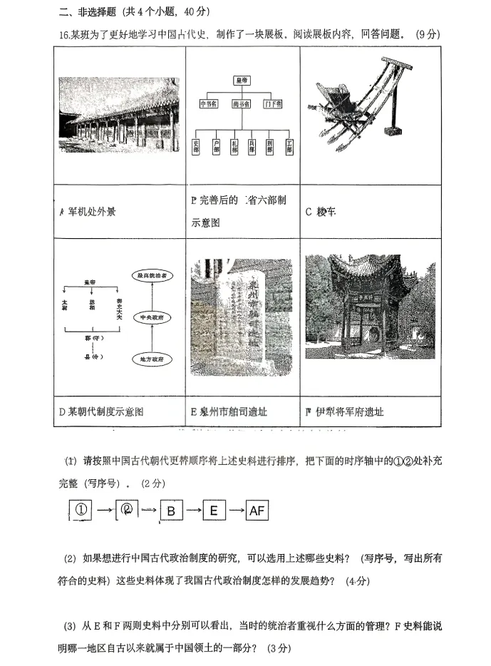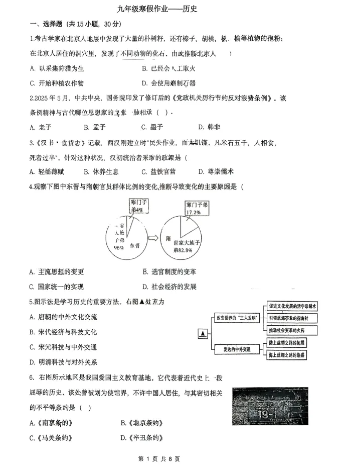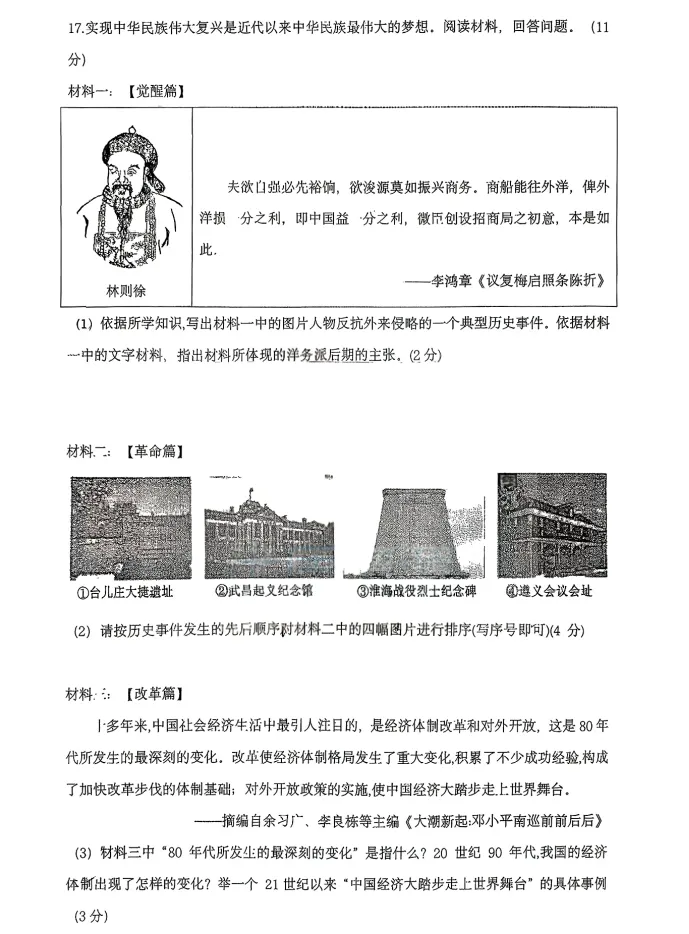 >2026年3月锦州实验九年历史零模试卷+答案