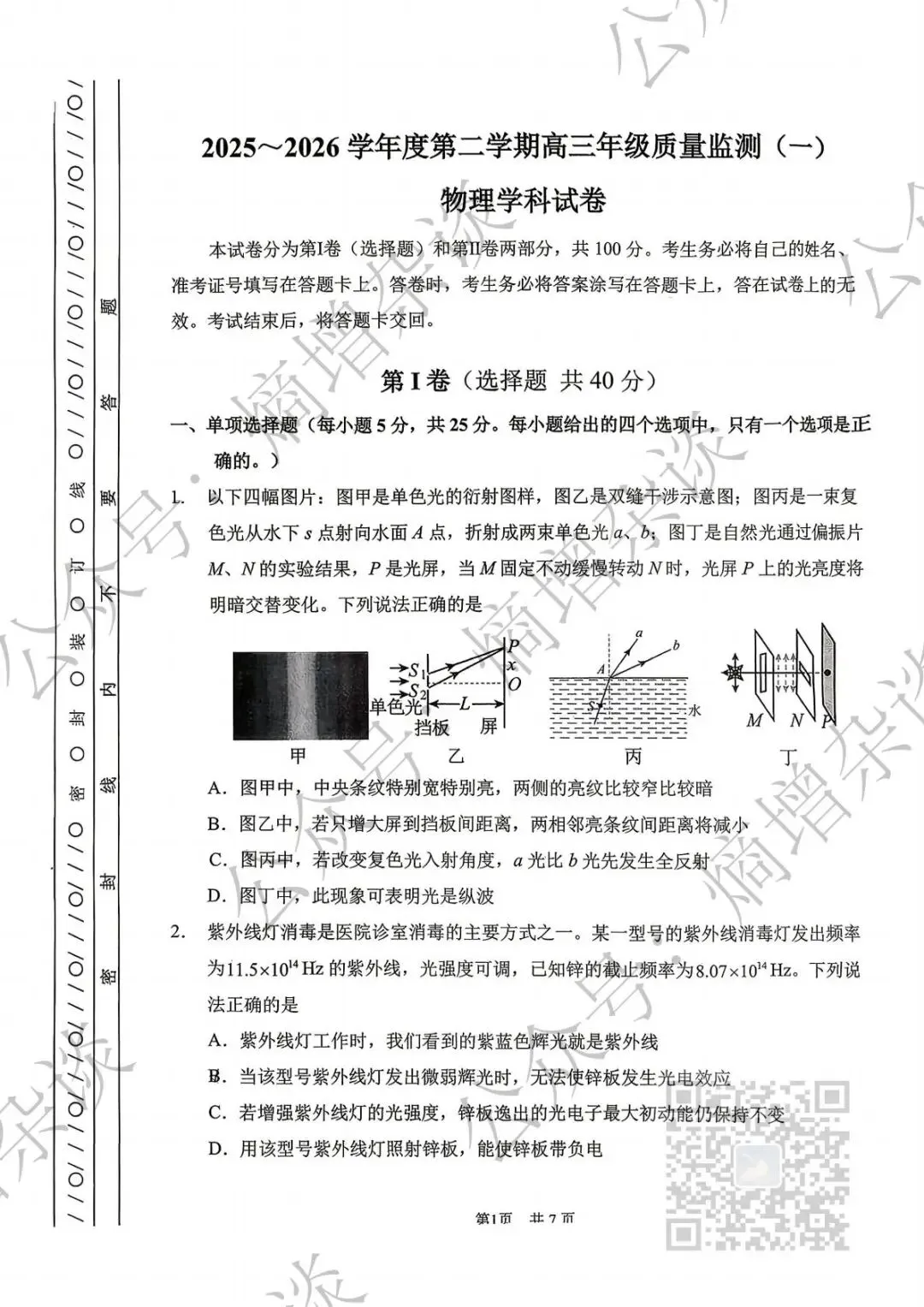 >2026南开高三一模物理试卷
