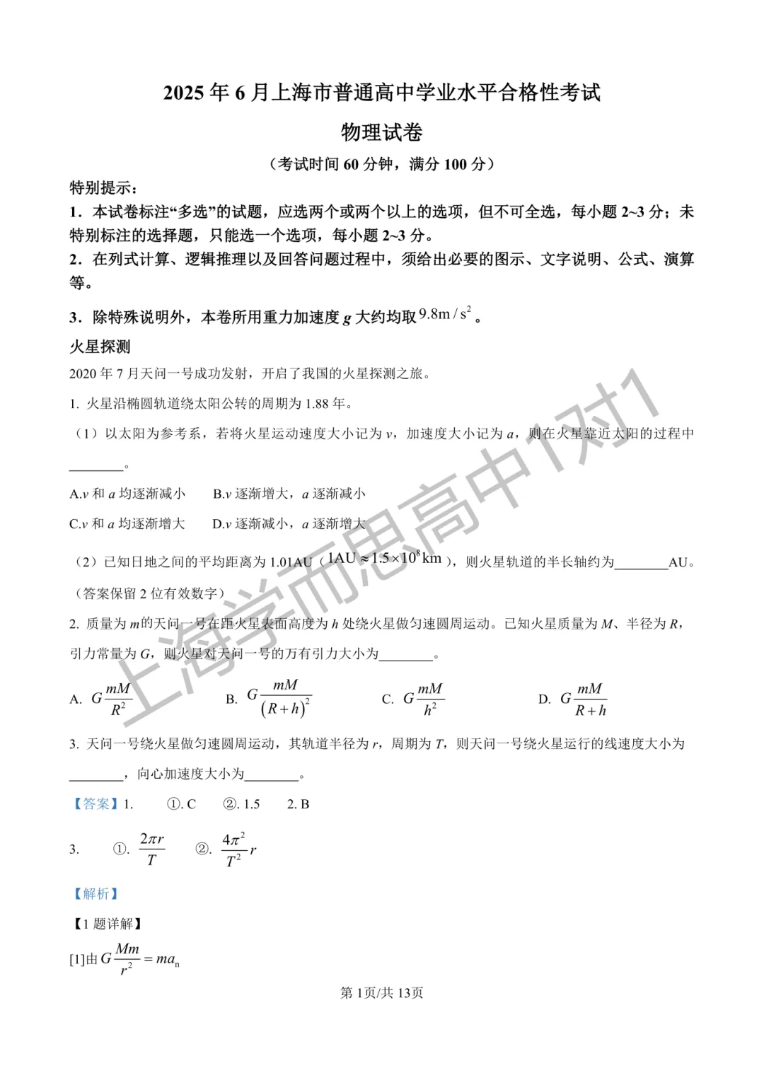 2026南开高三一模物理试卷