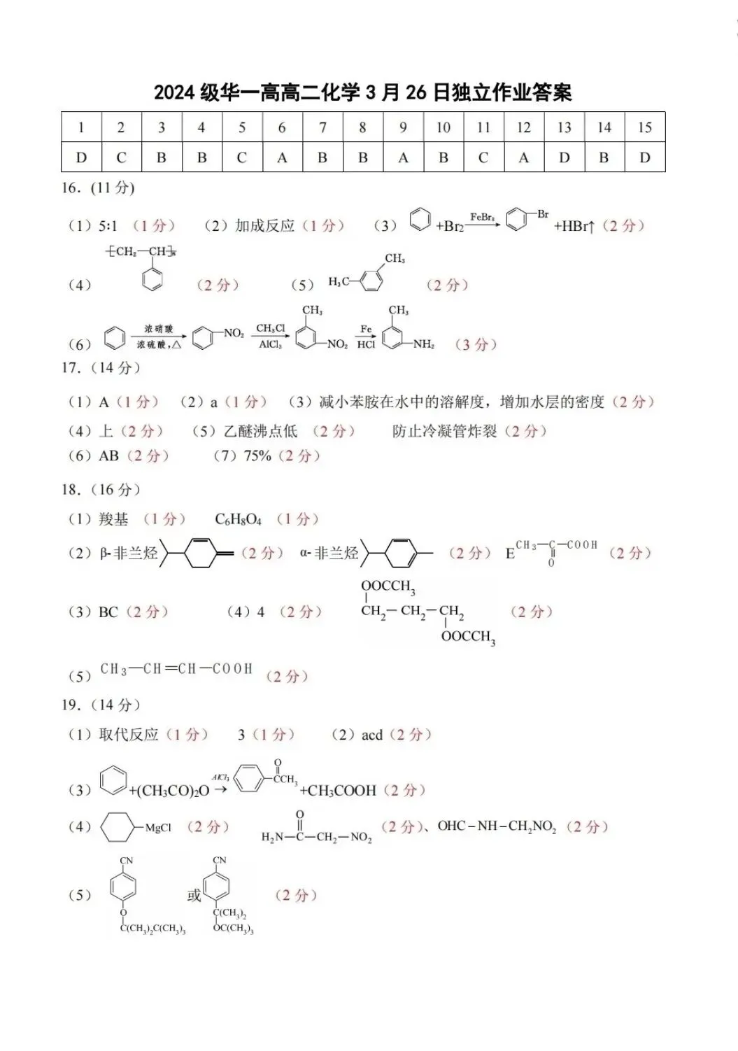 2026华师一附中高二3月检测化学试卷及答案