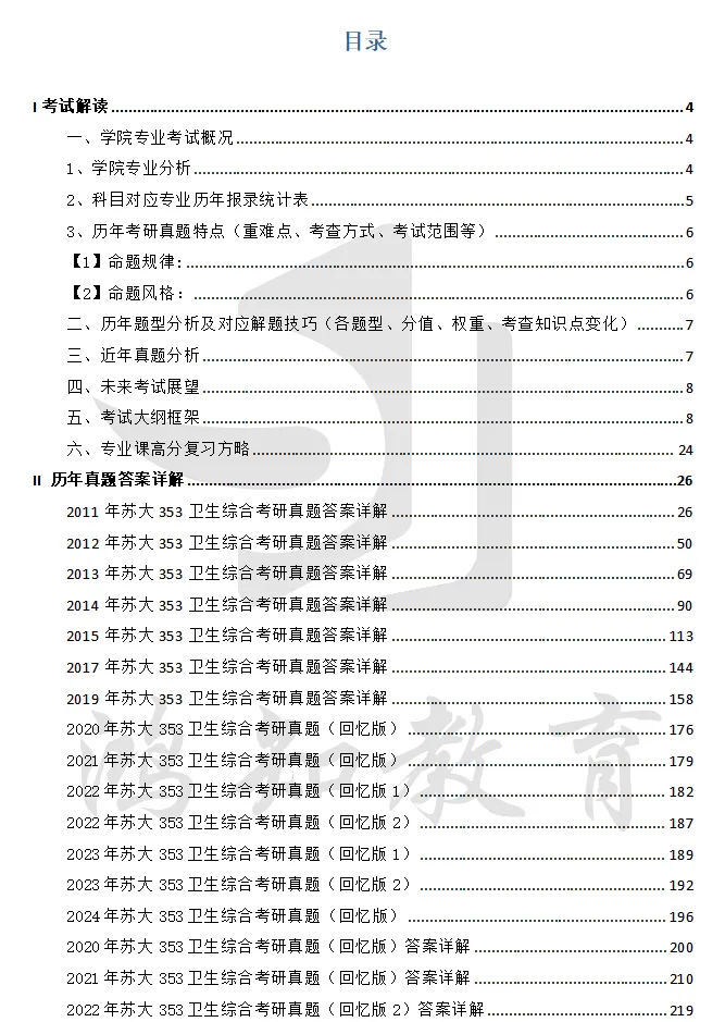 ③历年考研真题特点:含考研专业课353卫生综合各部分的命题规律及出题风格。