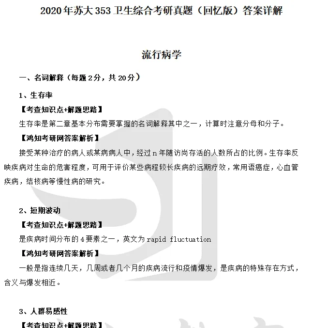 2020年苏州大学353卫生综合考研真题答案详解