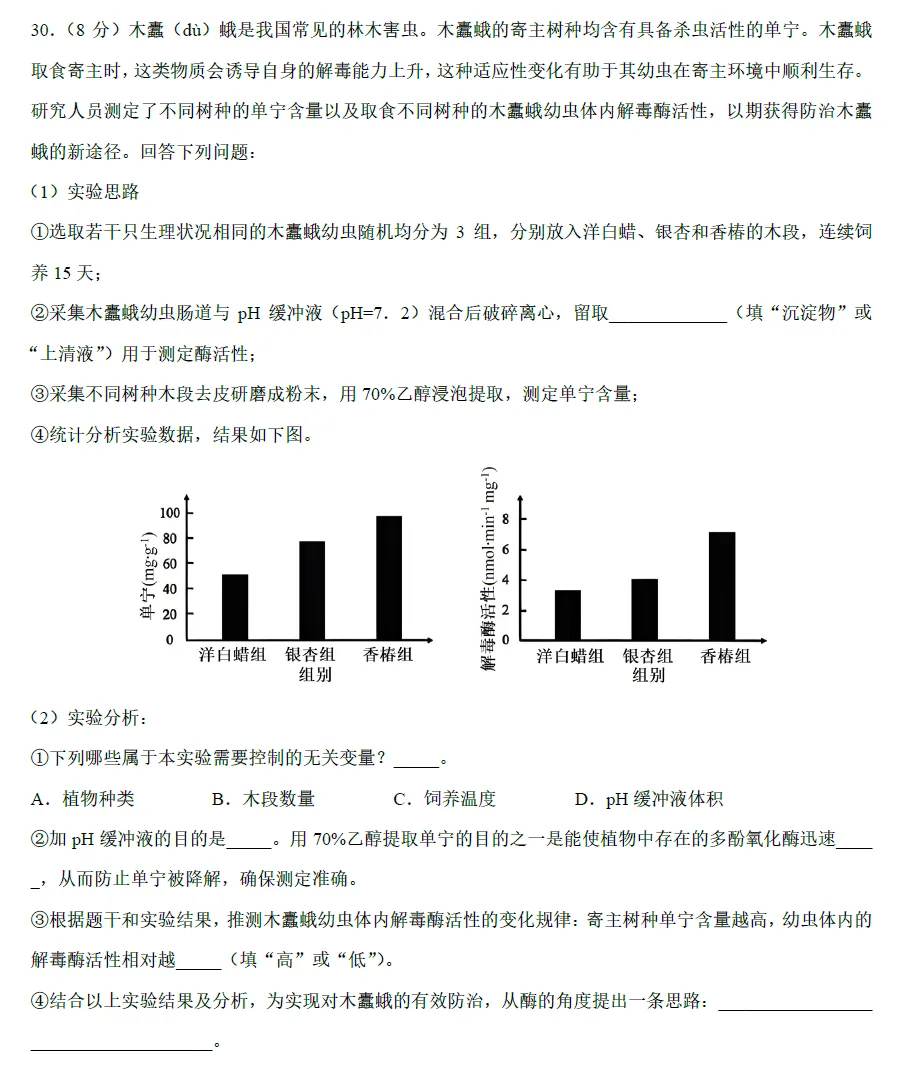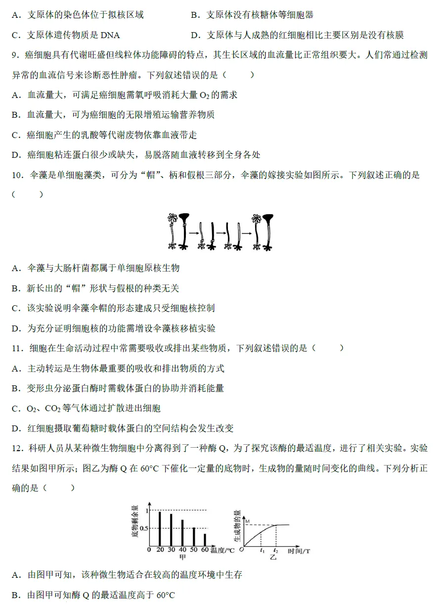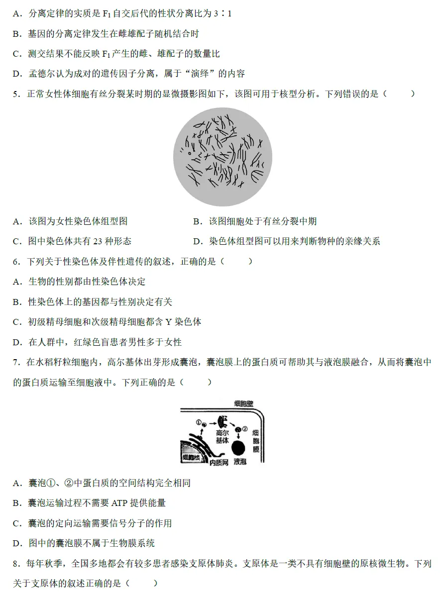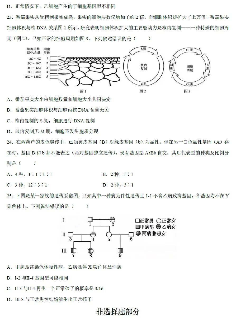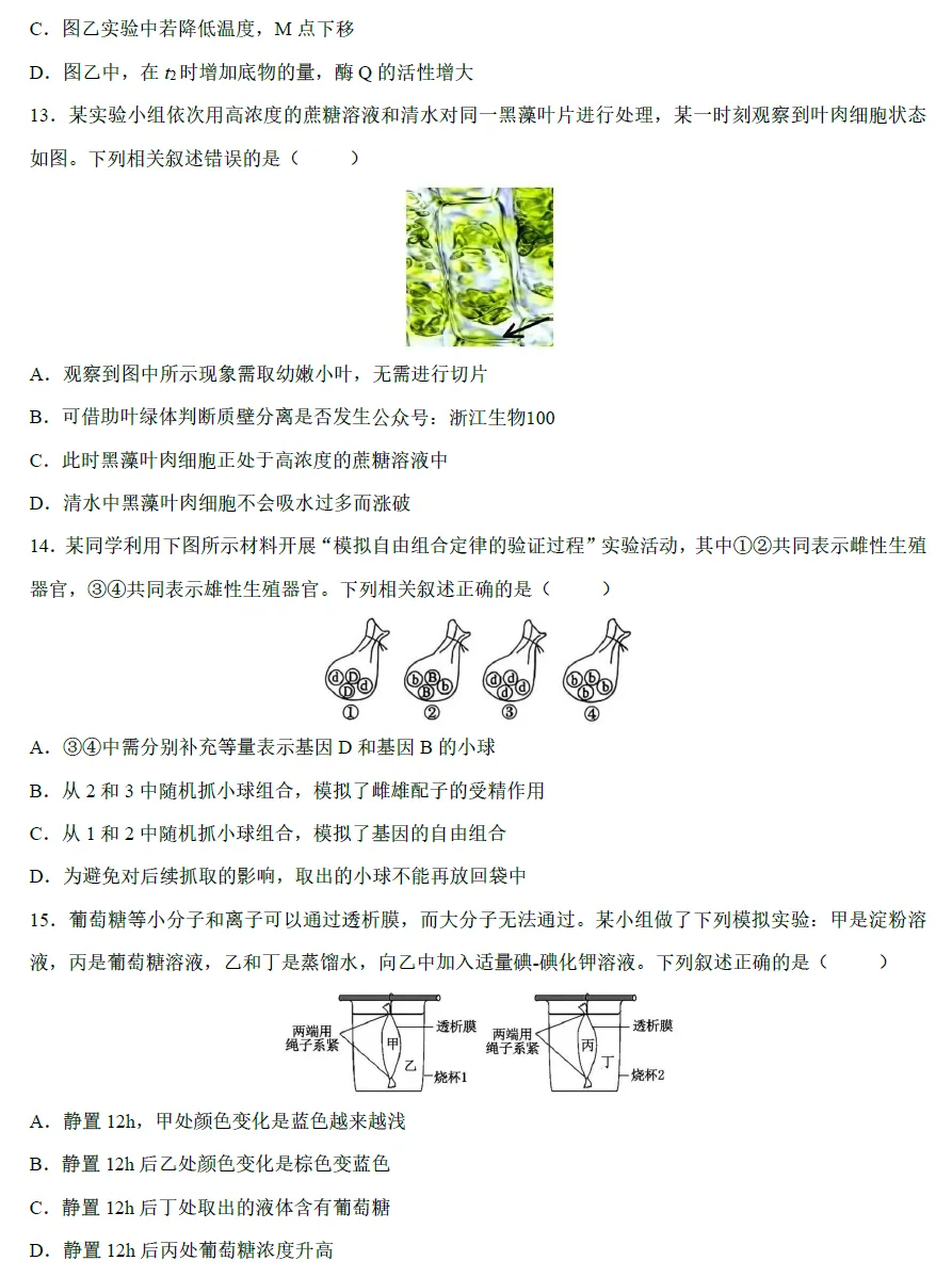 2021、2022、2023、2024、2025年浙江学考生物真题试卷、答案和解析