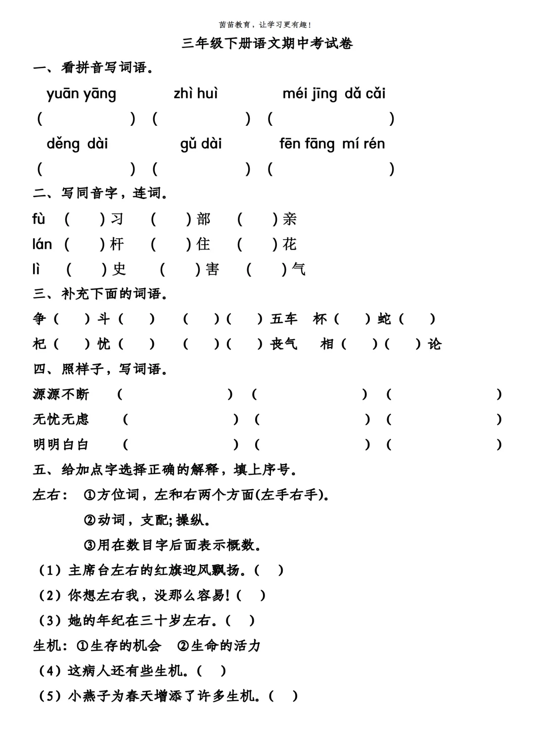 通过网盘分享的文件:三年级下册语文期中试卷1.pdf