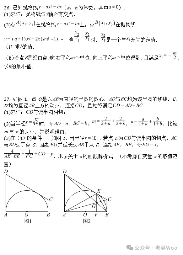 >2026南京市一中集团中考零模数学试卷+答案(2026.3)